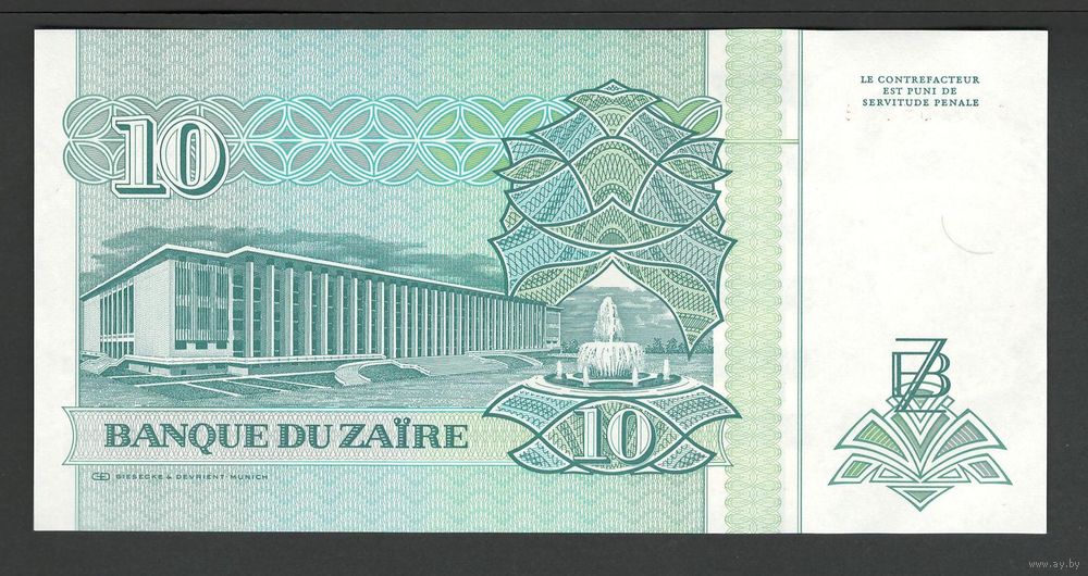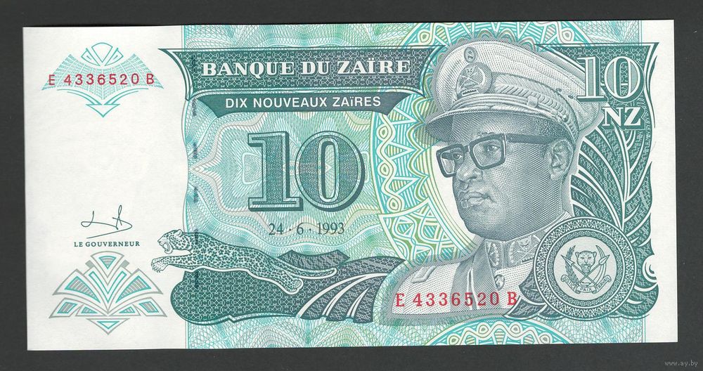 Заир 10 заиров 1993 года. Тип P-54. Состояние UNC