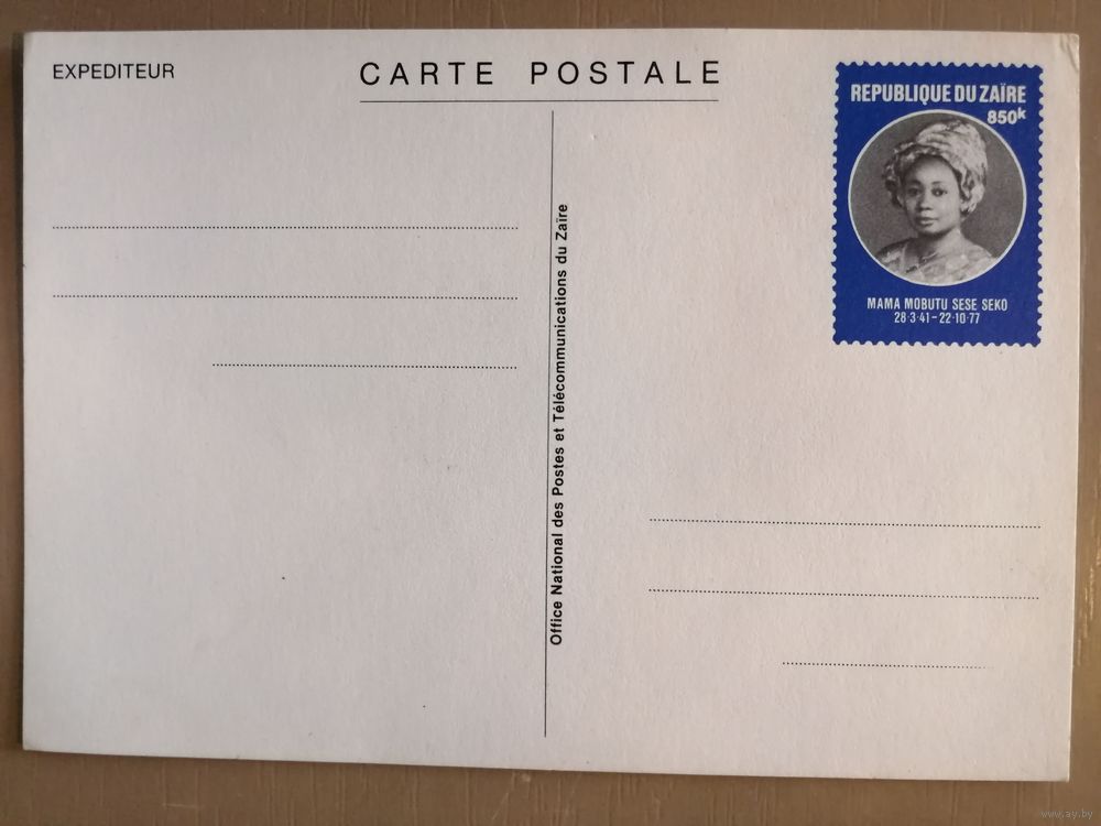Заир почтовая карточка 3, на марке Мама президента Мобуту Сиссе