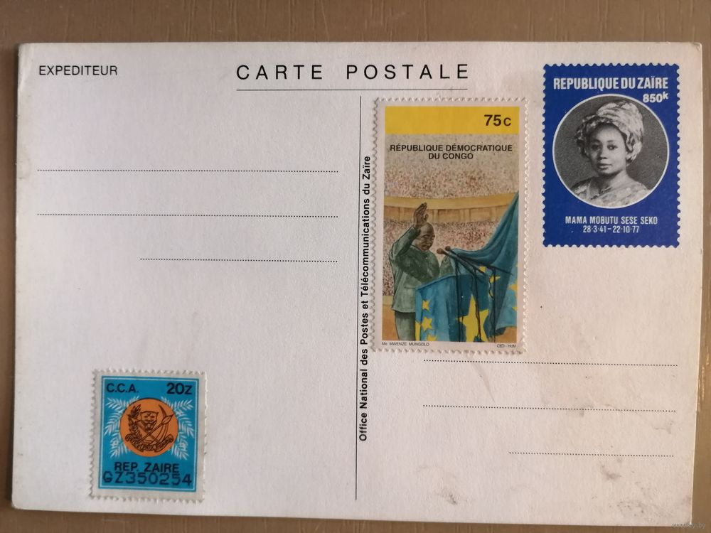 Заир почтовая карточка 4, мама президента, демократия, нац., символика