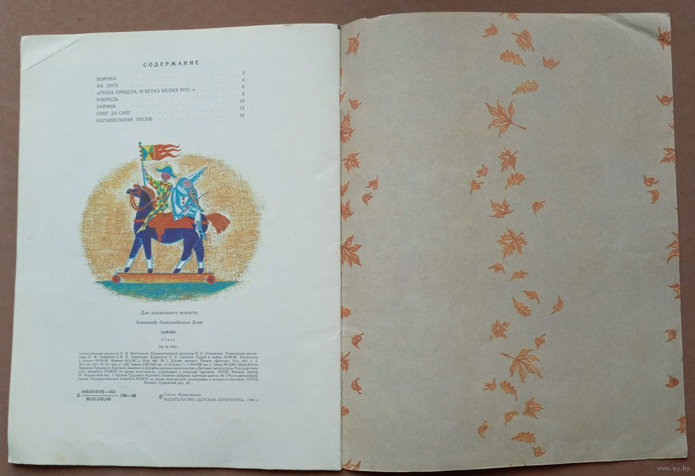 Зайчик. Александр Блок. Изд. "Детская литература". 1986г. Художник Б. Соловьёв.