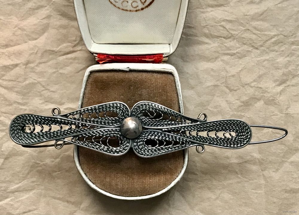 Крупная винтажная заколка для волос из мельхиора. Размер 8,5х2см. Состояние хорошее.