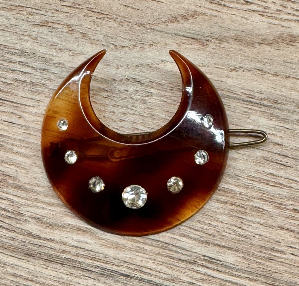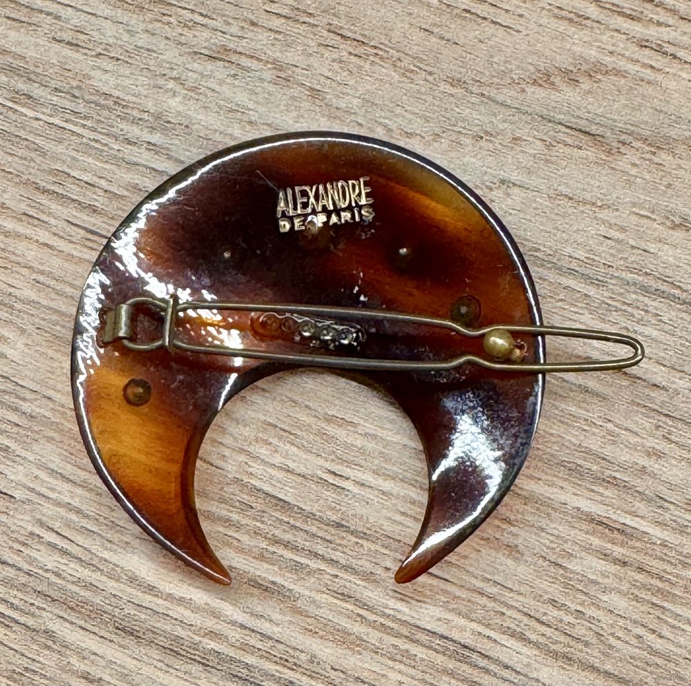 Заколка для волос от французской марки Alexandre de Paris. Основа из пластика, лицевая сторона украшена кристаллами Swarovski. Диаметр 4,5см. Состояние хорошее. Маркирована.