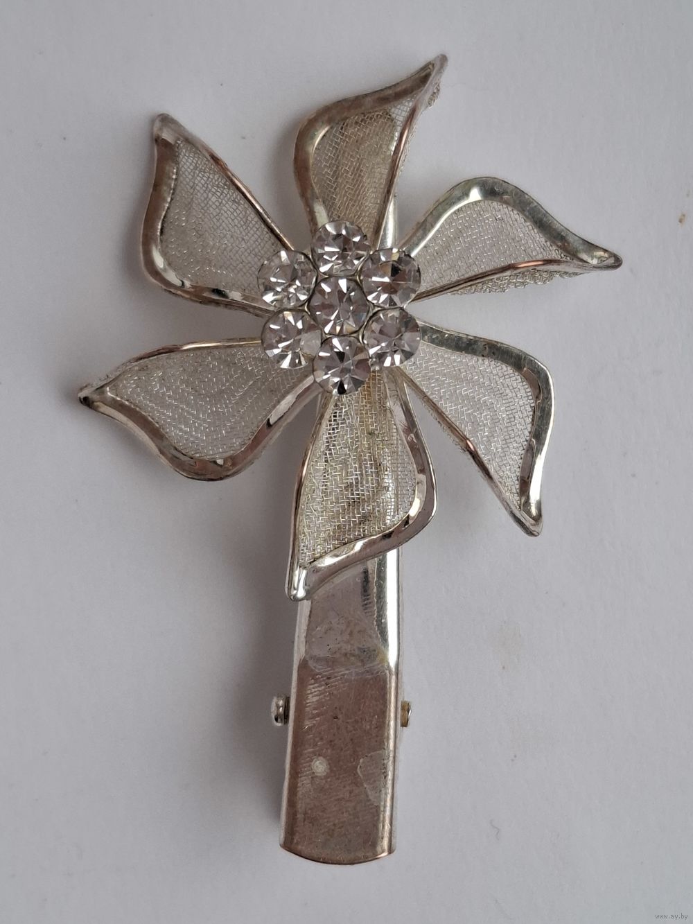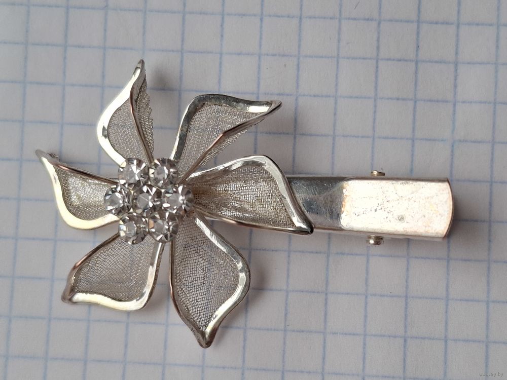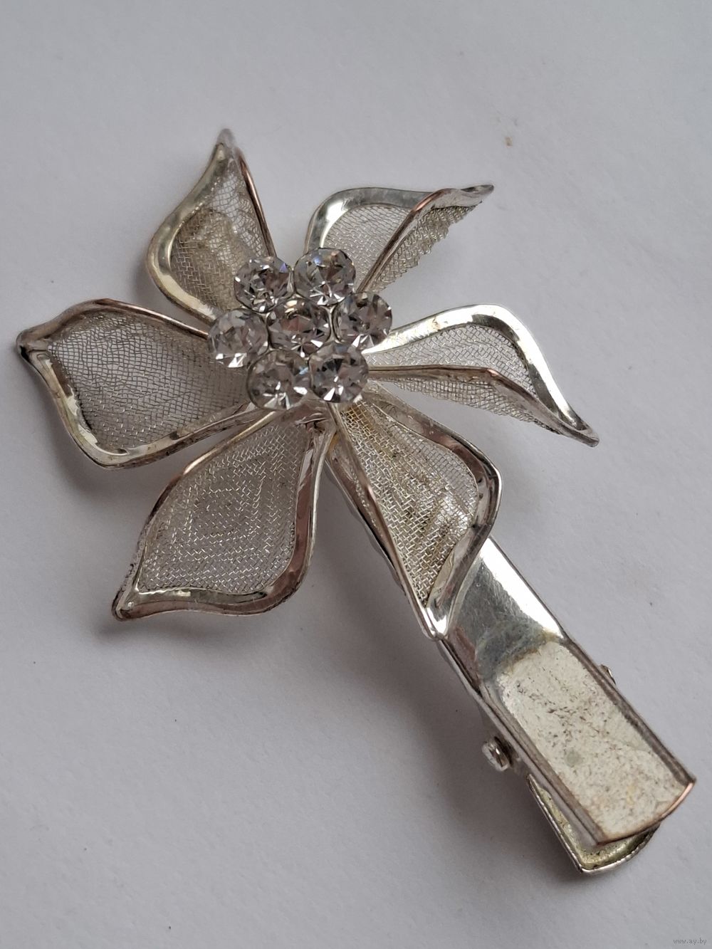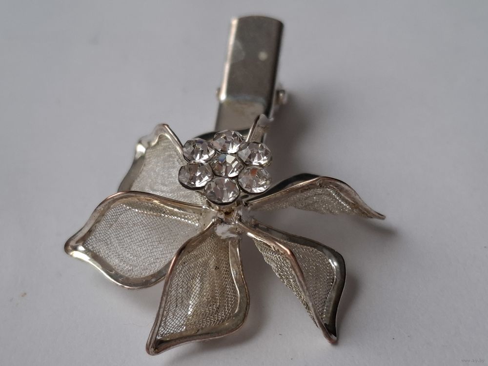 Заколка. Зажим для волос. Цветок. Ювелирная сеточка. Металл