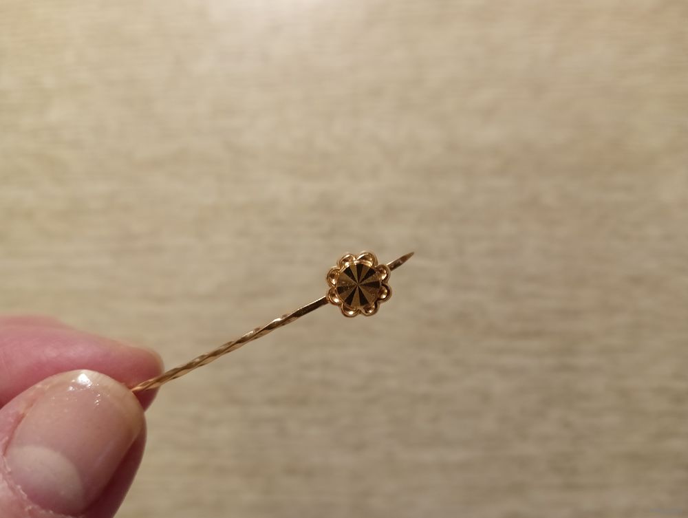Заколка из золота 585 пробы. Вес 1,63 г. Б/у в хорошем состоянии. Возможна отправка наложенным платежом.