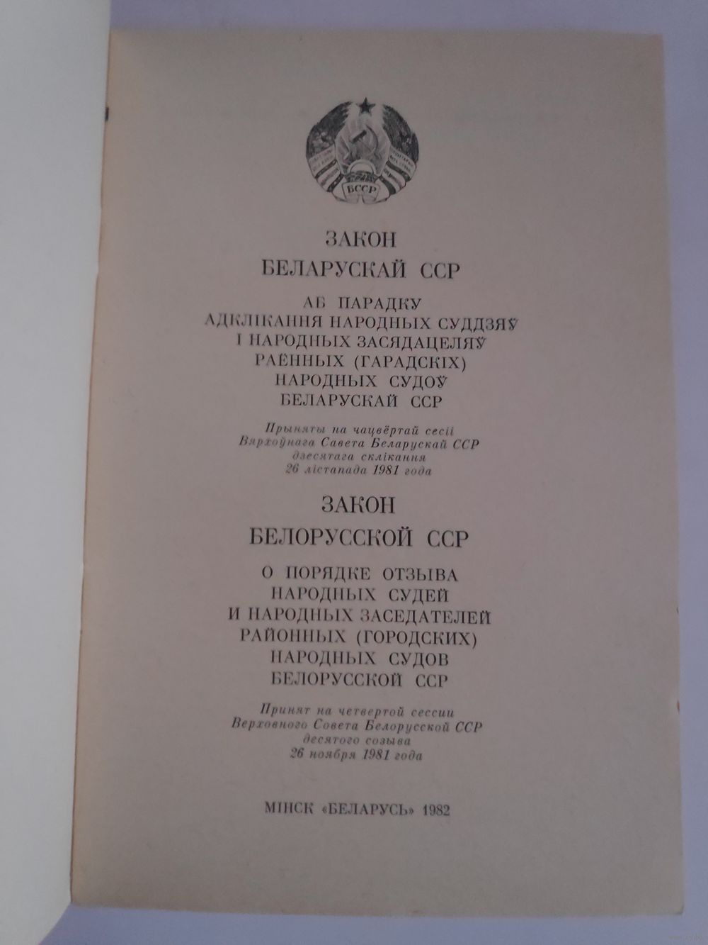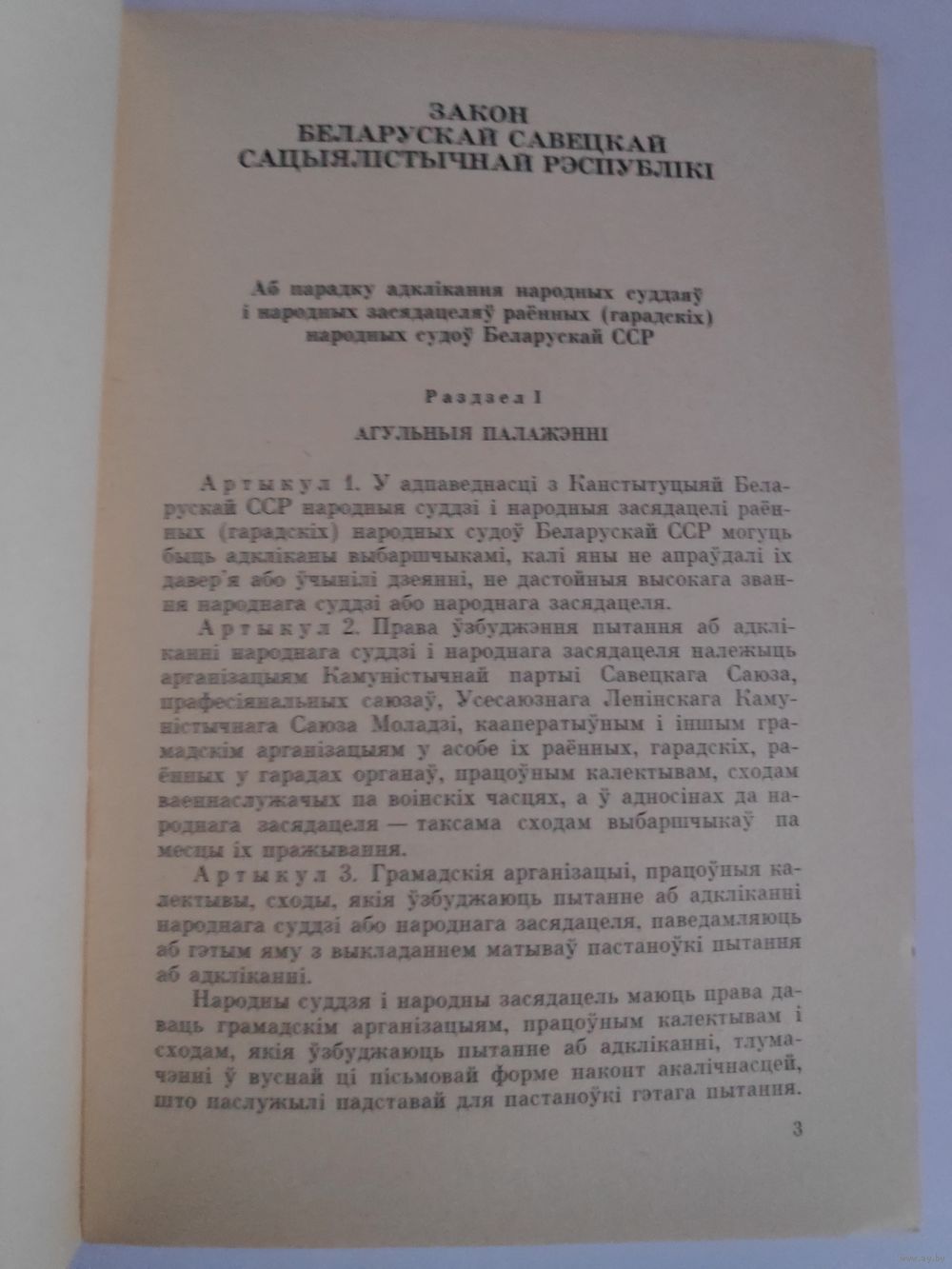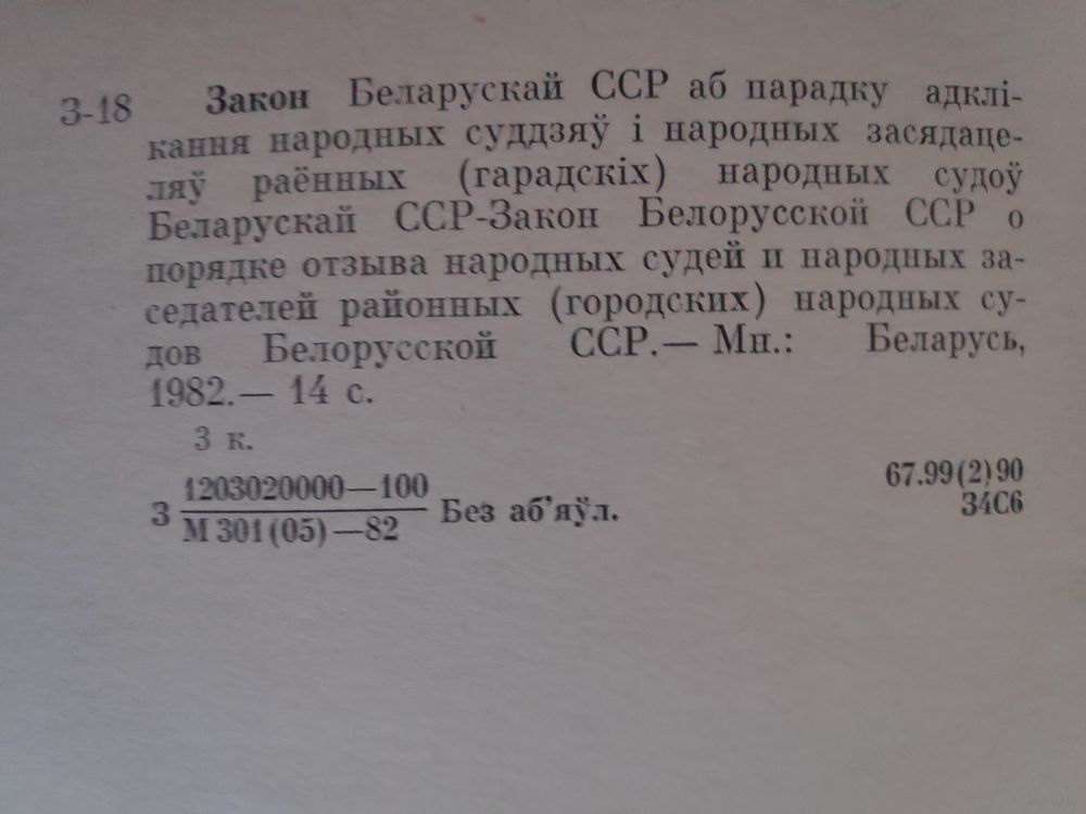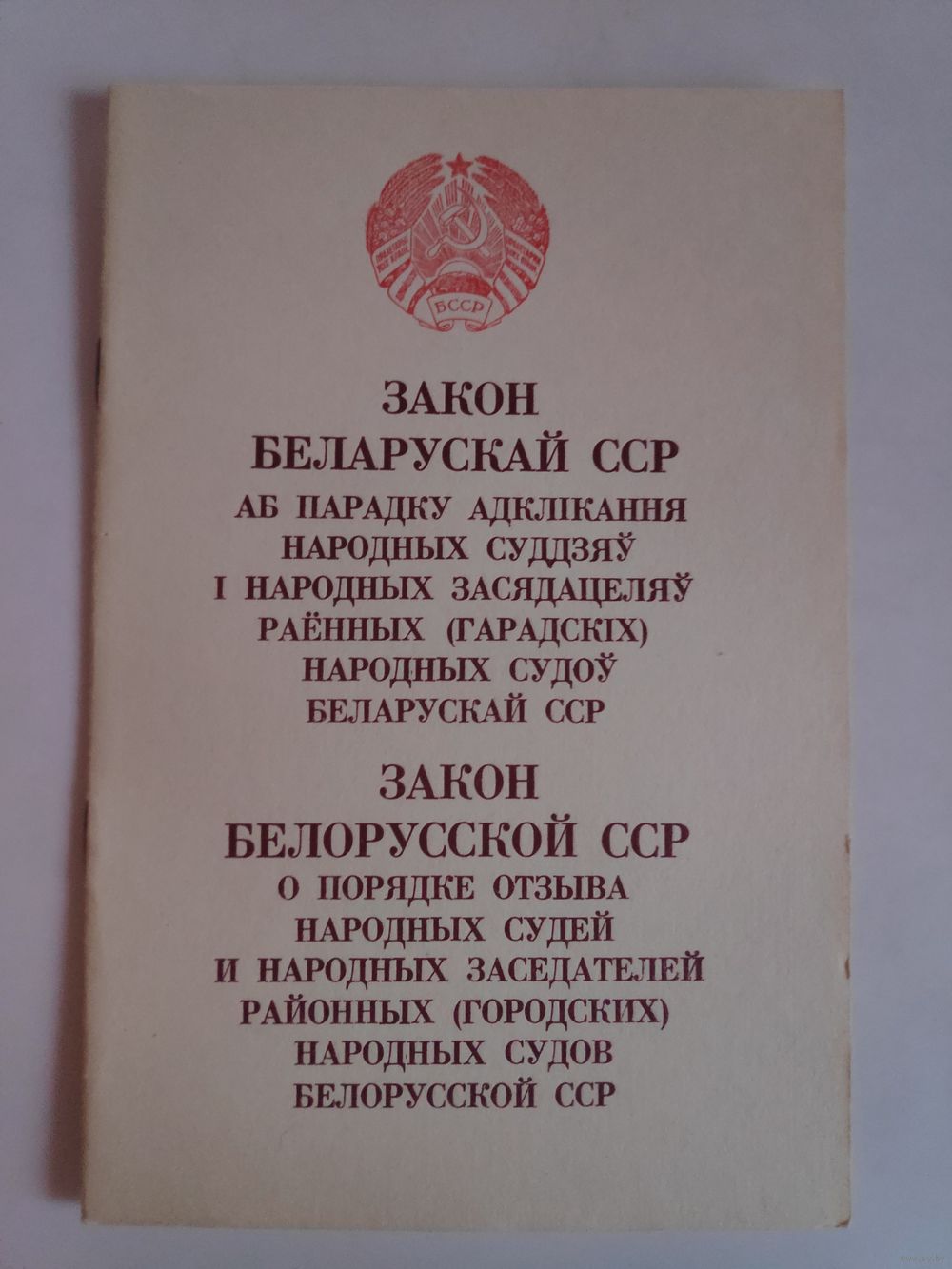 Закон Беларускай ССР аб парадку адклікання народных суддзяў і народных засядацеляў раённых (гарадскіх) народных судоў Беларускай ССР-Закон Белорусской ССР порядке отзыва народных судей и народных заседателей районных (городских) народных судов Белорусской ССР.