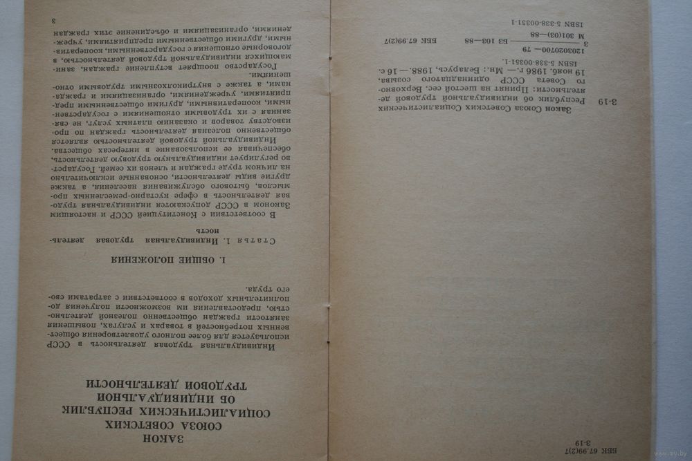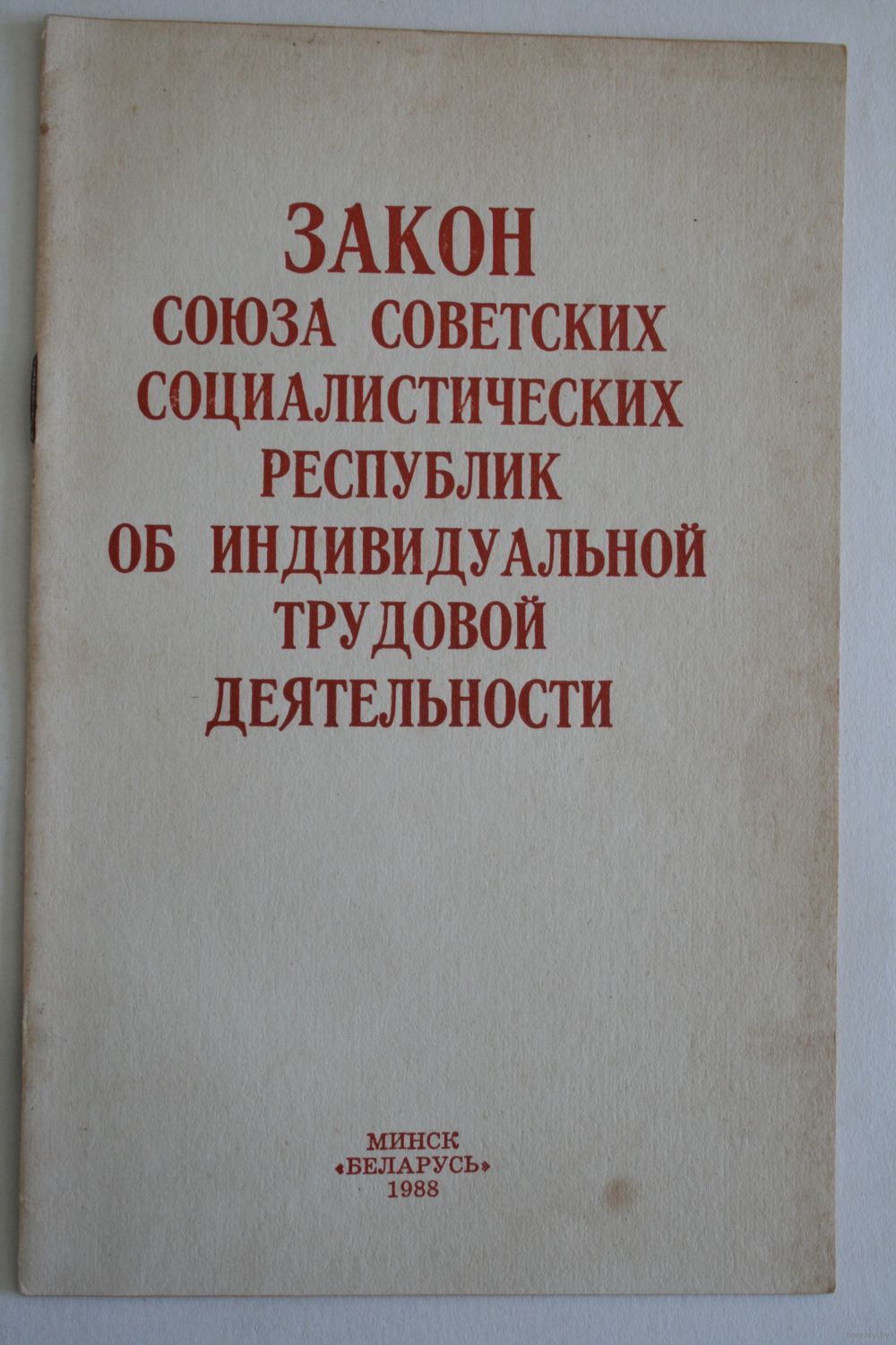 Закон об индивидуальной трудовой деятельности. СССР, 1988г.