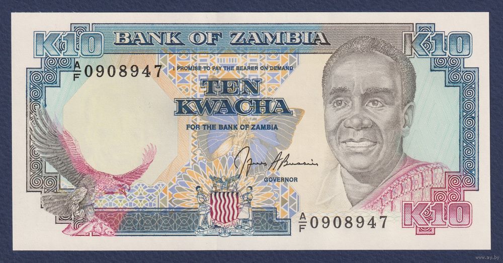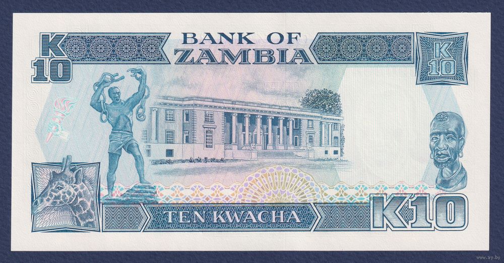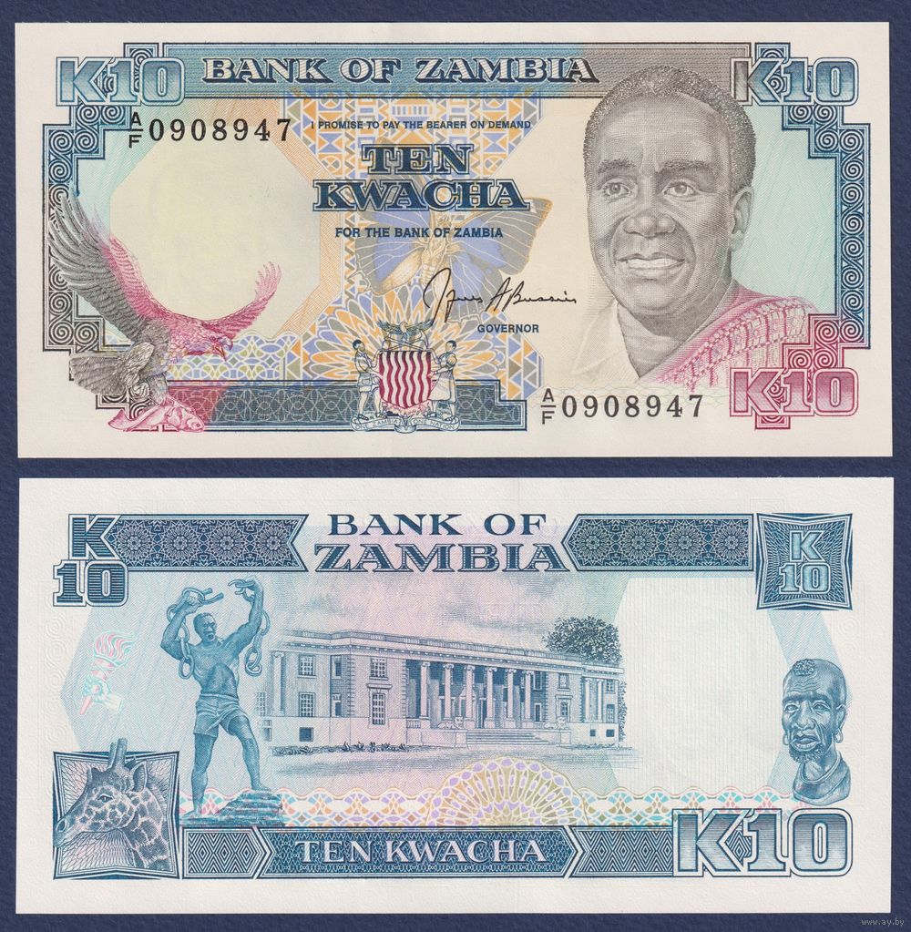 Замбия, 10 квача 1989 - 1991 г., P-31b (AF, президент Кеннет Каунда, здание верховного суда в Лусаке), UNC