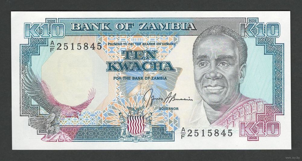 Замбия 10 квача 1989 года. Тип Р-31b. Состояние UNC