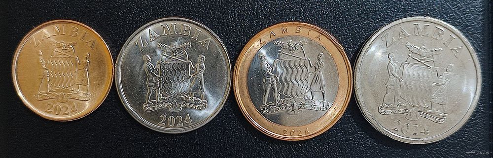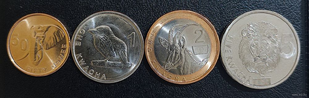 Замбия 50 нгве, 1, 2, 5 квача 2024 год ( набор 4 монеты).