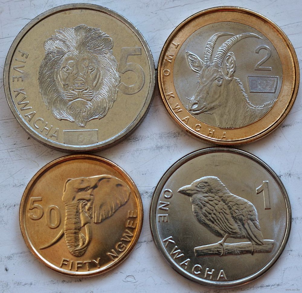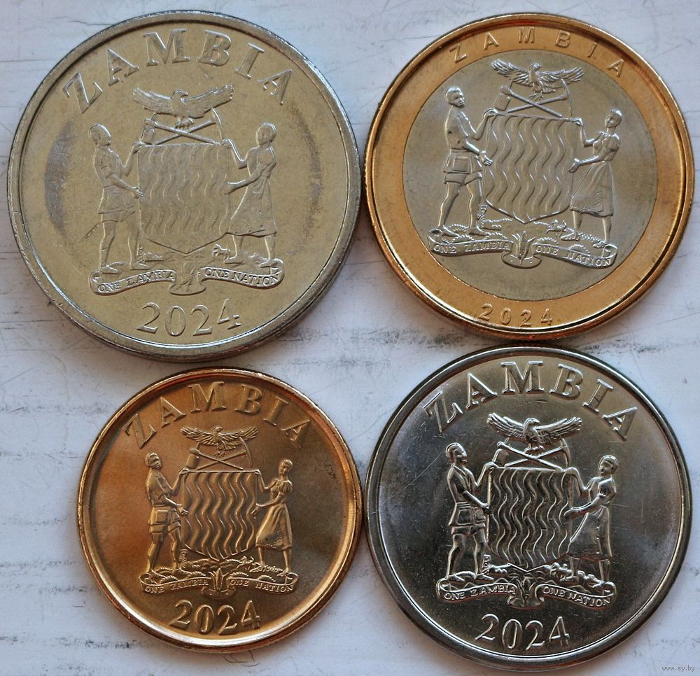 Замбия Набор 4 монеты (5, 2, 1, 50) 2024 год