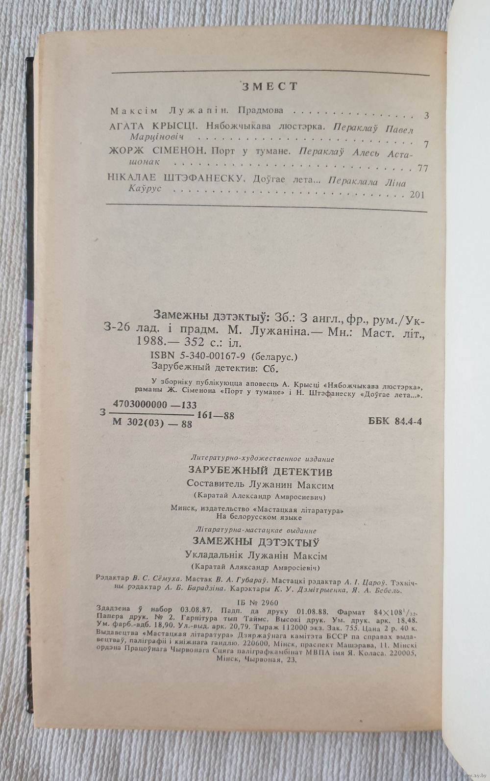 Книга «Замежны дэтэктыу»: сборник - Агата Крыстi, Жорж Сiменон, Нiкалае Штэфанеску, на белорусском языке.