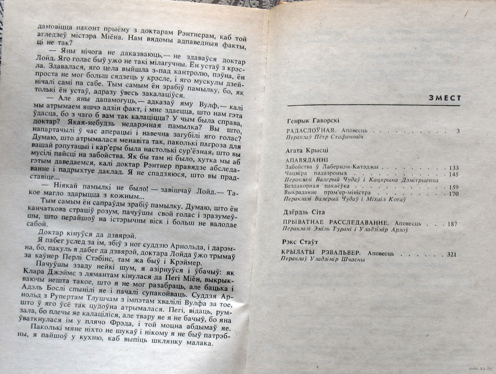| Автор | Генрык Гаворскi. Агата Крысцi. Дзёрдзь Сiта. Рэкс Стаут. |