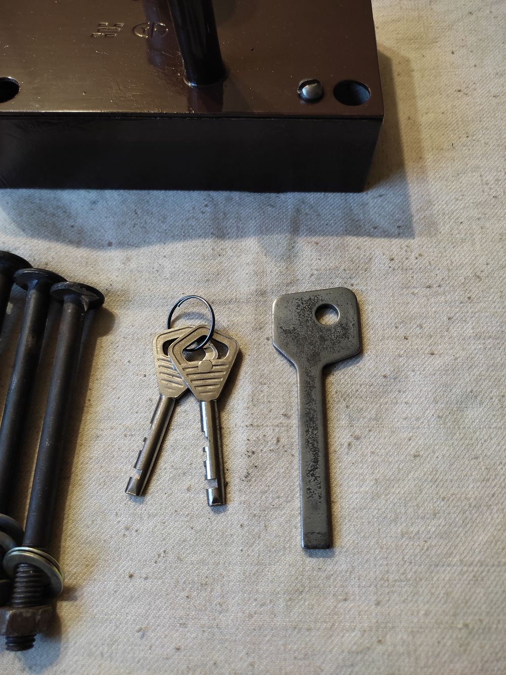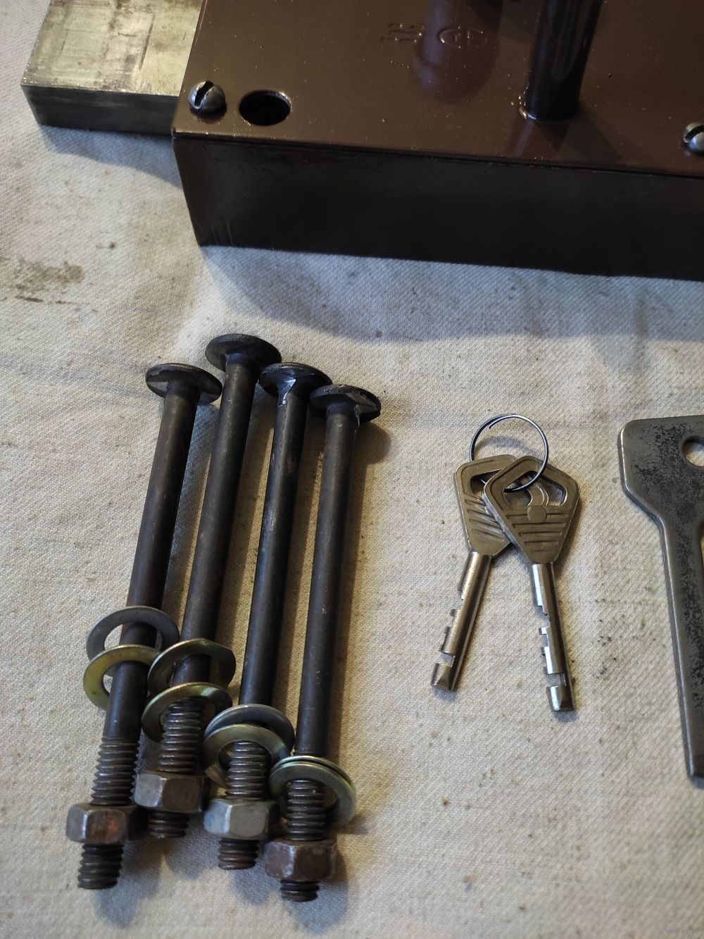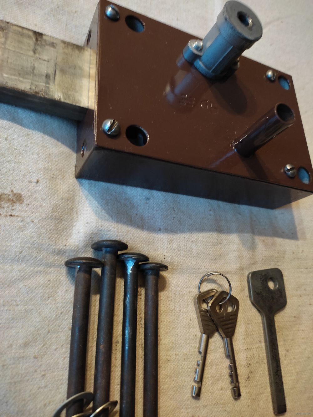 Замок гаражный , 2 ключа . Полная реставрация и восстановление , аккуратно окрашен. Сам замок и сердцевина смазаны. Работает отлично. Размеры замка : длина - 14 см , ширина - 9 см , толщина - 3,5 см. Крепежные отверстия : по горизонтали - 11 см , по вертикали - 7 см. Есть 4 крепежных болта. Высылаю : Белпочта , Европочта.