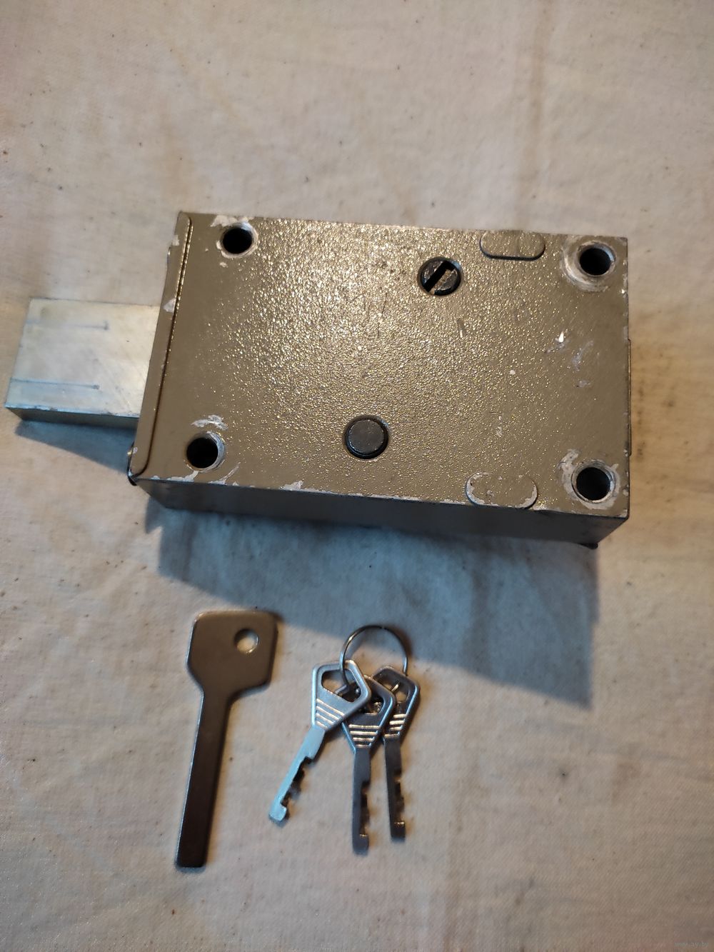 Замок гаражный , 3 ключа. Размеры замка : длина - 14 см , ширина - 9 см. Крепежные отверстия : по длине - 11 см , по ширине - 7 см. Работает отлично. Высылаю : Белпочта , Европочта.