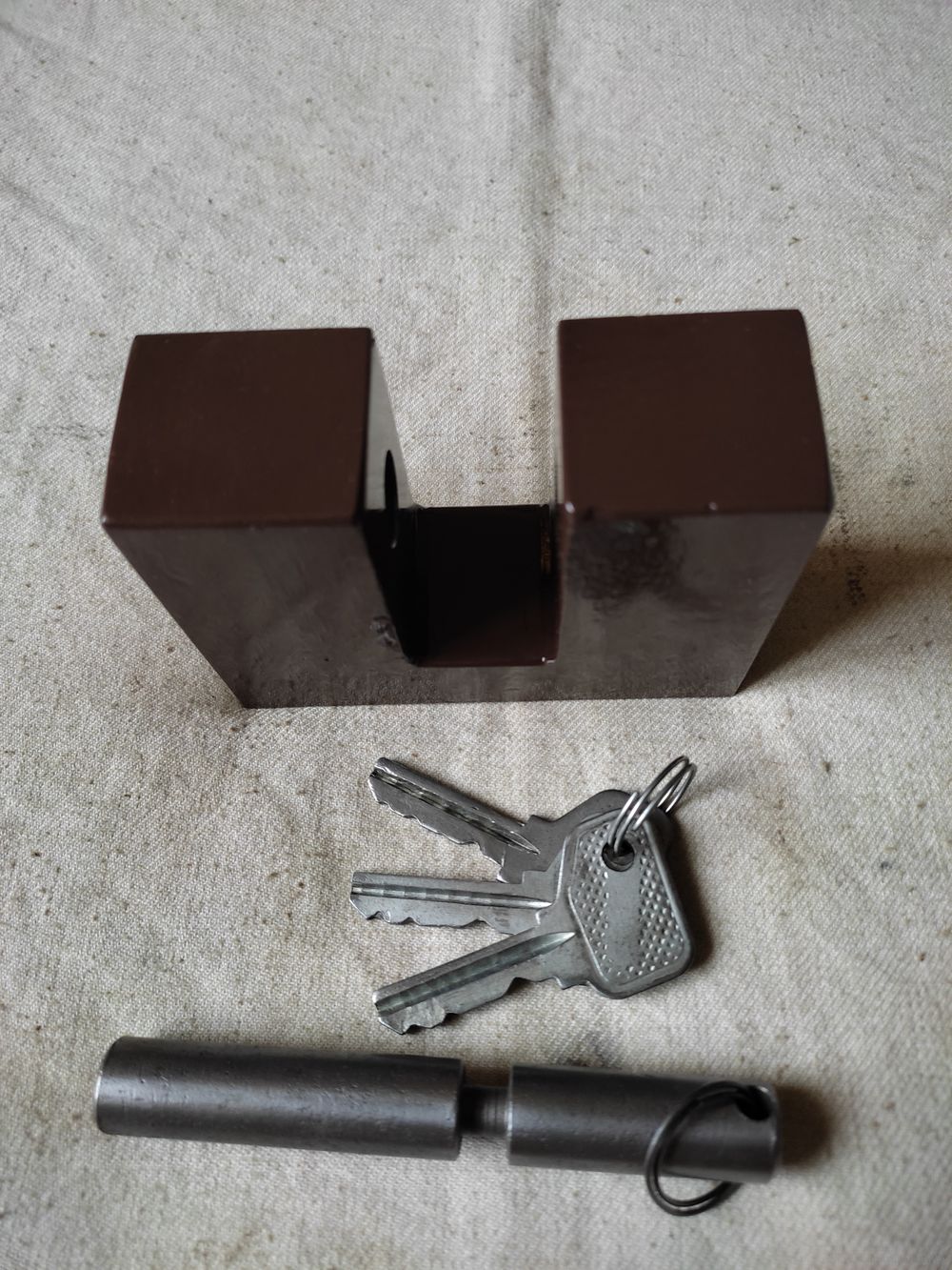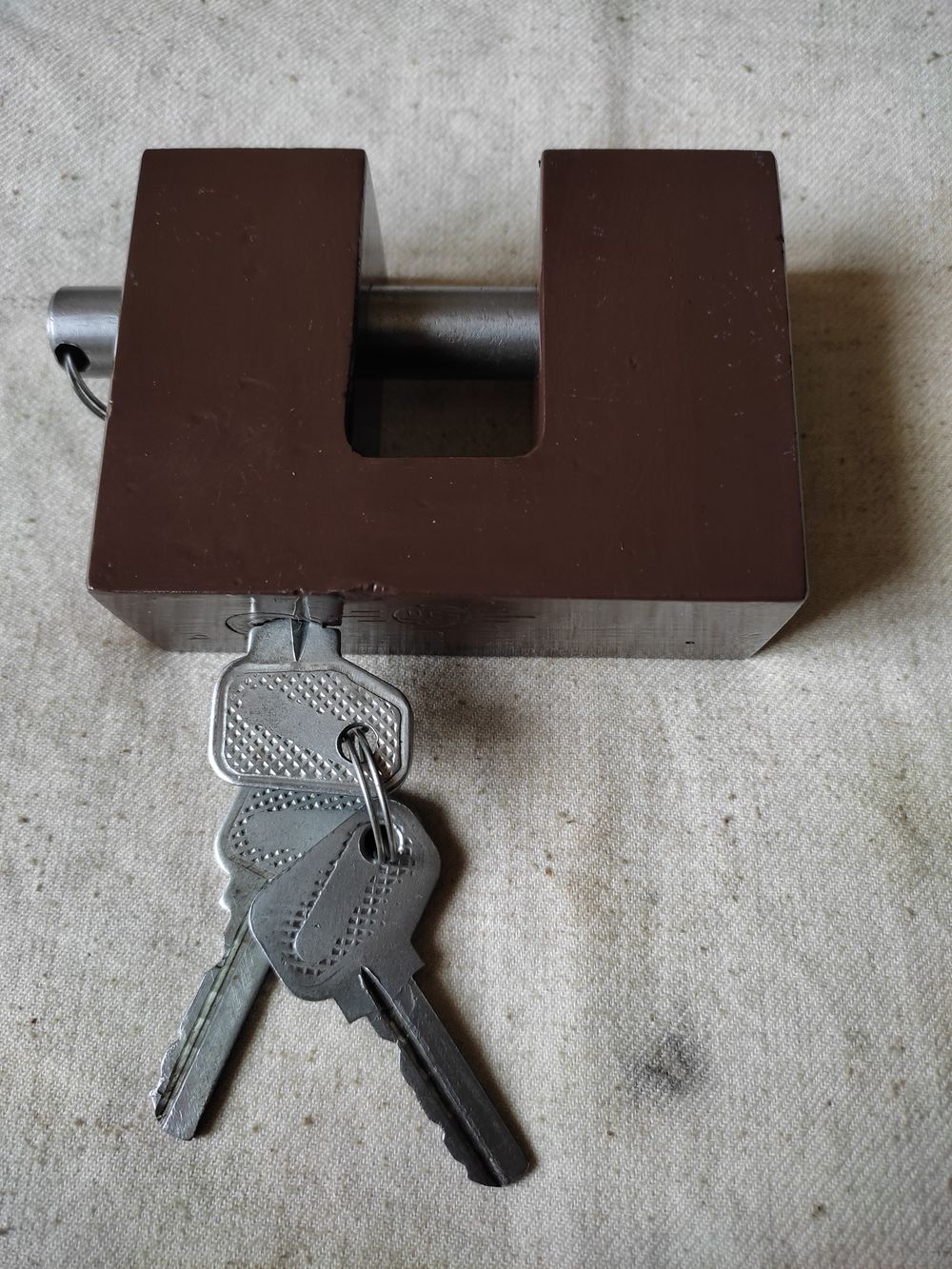 Замок навесной , гаражный , противовзломный , 3 ключа. Полная очистка и реставрация , аккуратно окрашен , смазан , работает отлично. ОСЗ - Оршанский станкостроительный завод. Длина замка - 9,3 см , высота - 7 см , толщина - 3 см. Диаметр запирающего стержня - 14 мм. Вес с ключами - 1 кг 245 гр. Высылаю : Белпочта , Европочта.