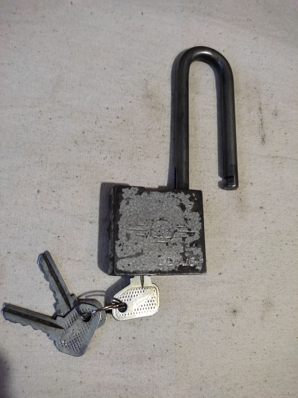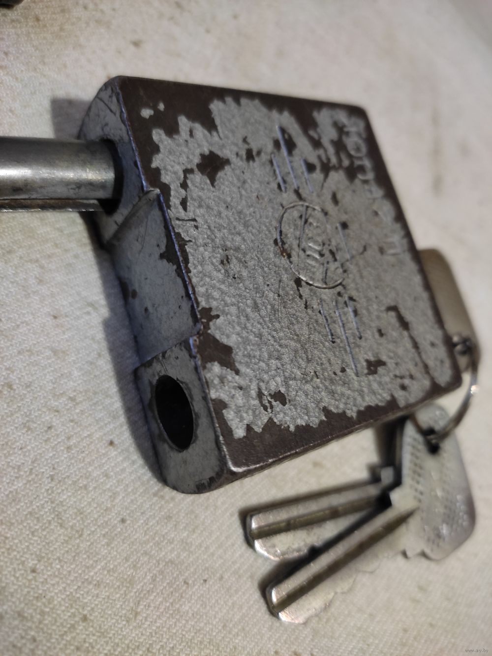 Замок навесной СССР , 3 ключа , длинная дужка . ОСЗ - Оршанский станкостроительный завод. Общая высота замка ( в закрытом состоянии ) - 14,5 см , ширина - 6 см , вес с ключами - 555 гр. Диаметр дужки - 10 мм. Высылаю : Белпочта , Европочта.