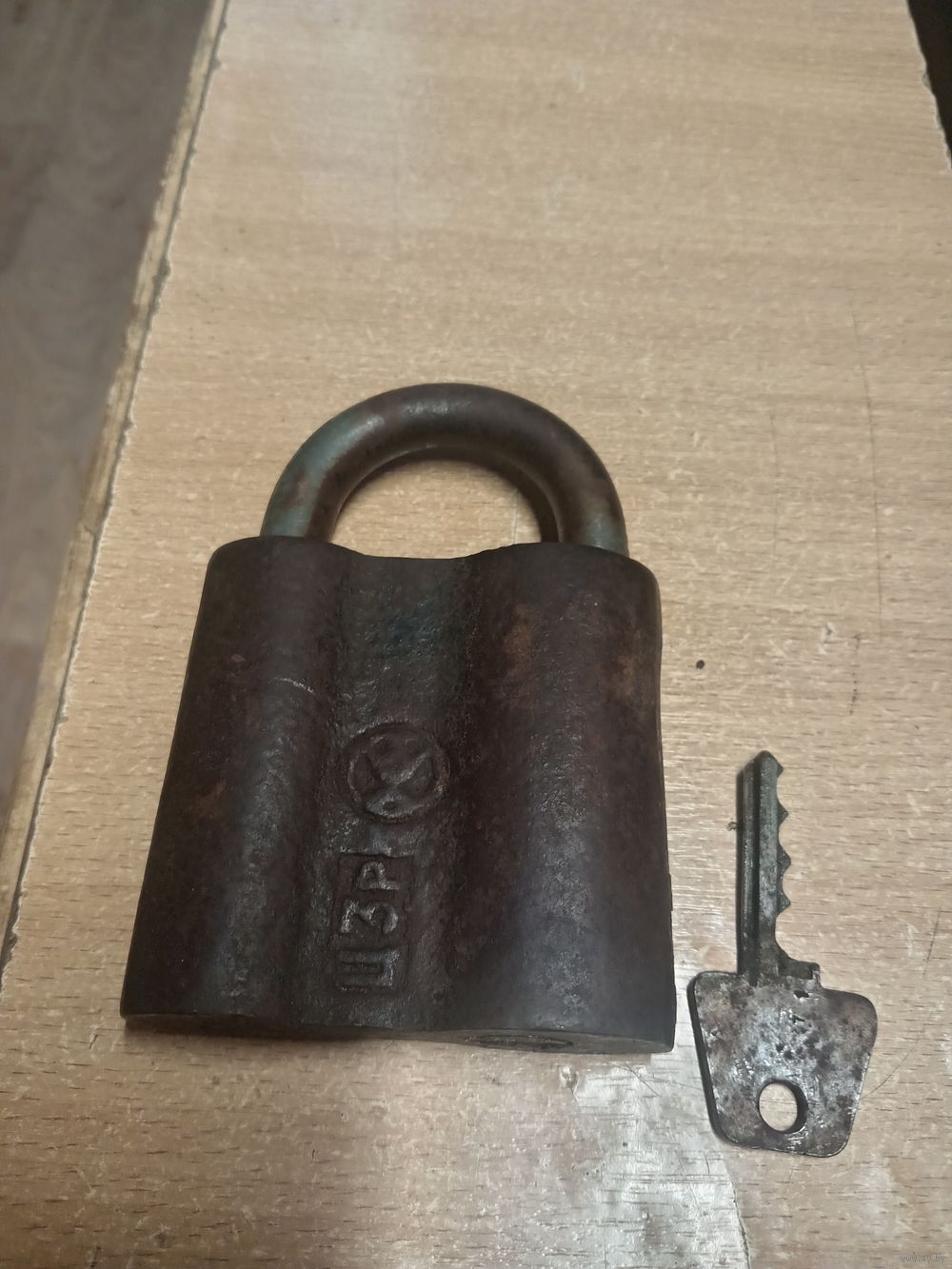 Замок навесной ссср тяжёлый вес 1кг в отличном рабочем состоянии один ключ цена 50рублей отправим БЕЛ ПОЧТОЙ по Р.Б либо самовывоз из проспекта Пушкина 24, телефон [удалено модератором за нарушение правила 1.3]