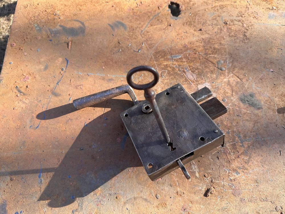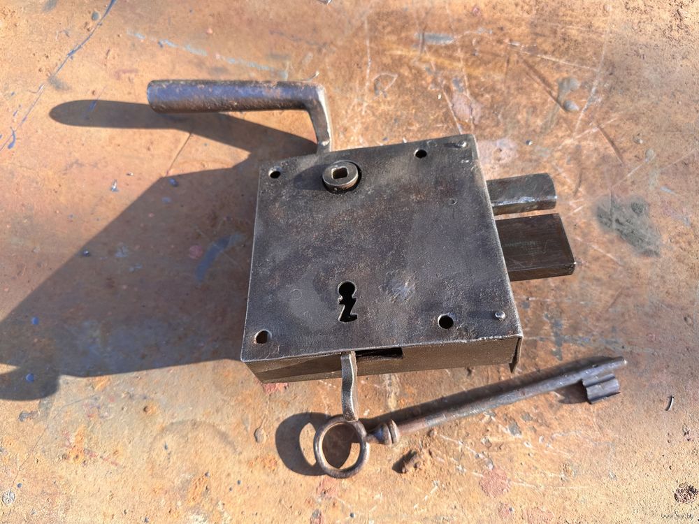 Замок старинный, всё работает. Ключ в комплекте, закрывает на два оборота.