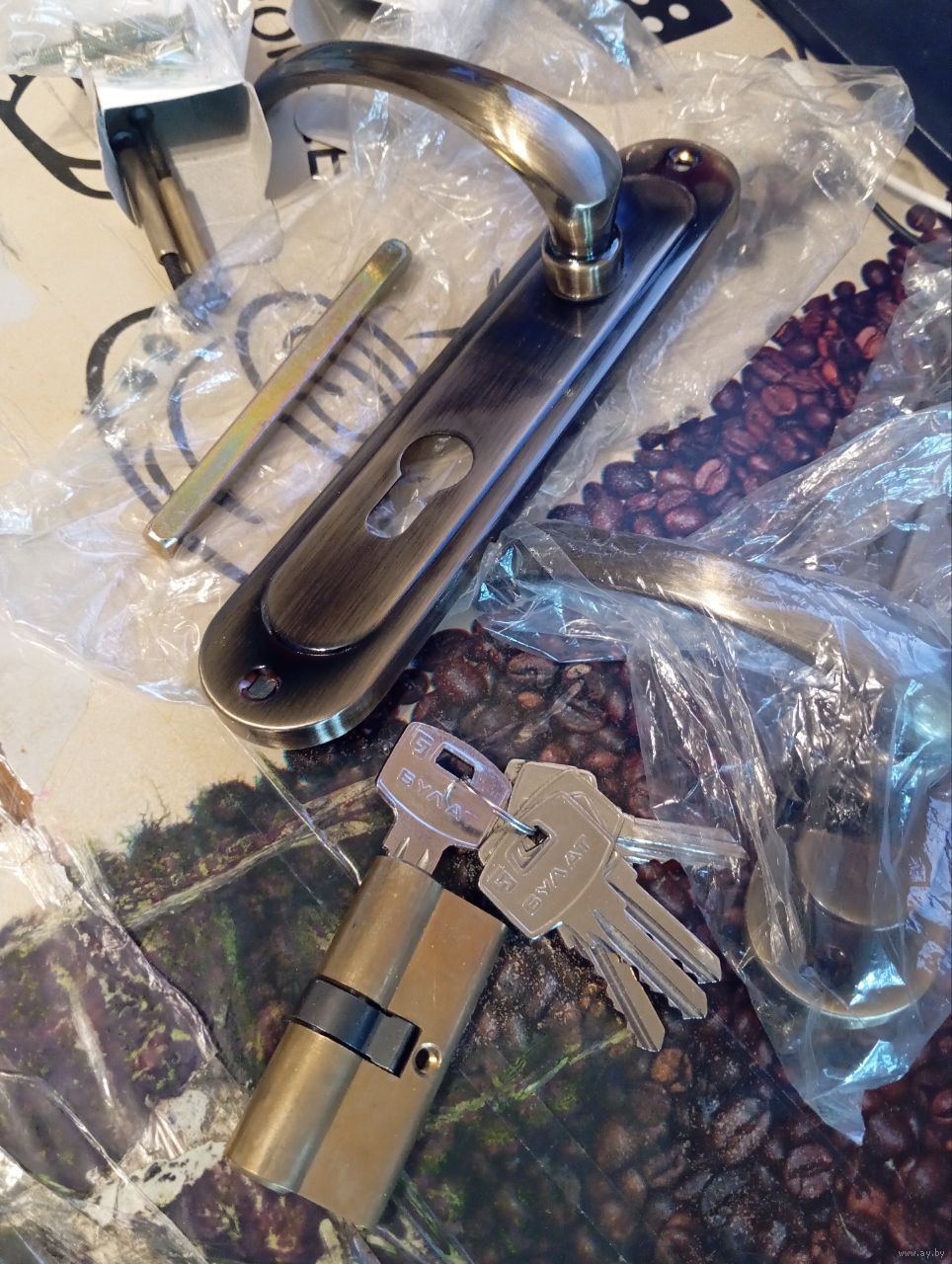 Замок цилиндровый врезной с фалевыми ручками БУЛАТ модель 4-1/70.79.01 5479АВ. Предназначен для установки на внутренние и наружные двери левого и правого исполнения (реверсивная защёлка) общественных зданий и жилых помещений. Замок используется на дверях, открывающихся наружу и вовнутрь. Фурнитура выполнена из сплава цинка, алюминия и меди.