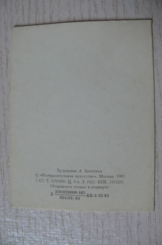 Покупатель первым выходит на связь в течение 3-х дней ТОЛЬКО по ЭЛЕКТРОННОЙ ПОЧТЕ (на звонки НЕ отвечаю). Личная встреча по ул. Одинцова, 20 только по предварительной договоренности. Отправка по почте после 100% предоплаты.