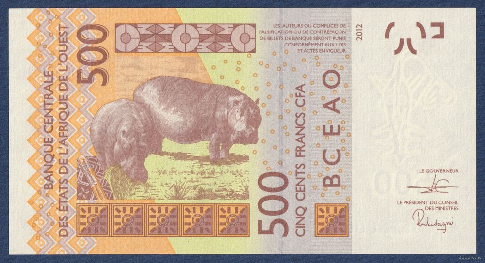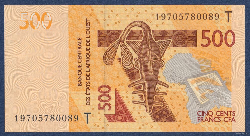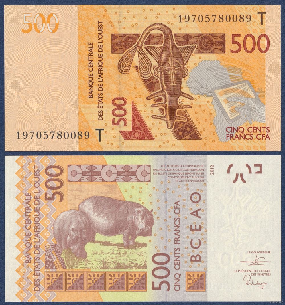 Западная Африка, 500 франков 2019 г, P-819T (T - Того, гиря для взвешивания золота, гиппопотамы), UNC