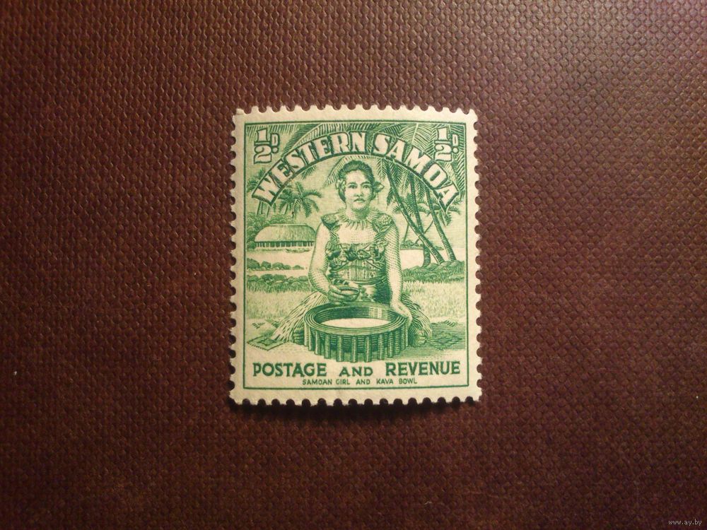 Западное Самоа 1935 г.Самоанская девушка и чаша для кавы.Чистая с клеем .