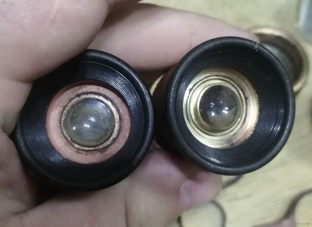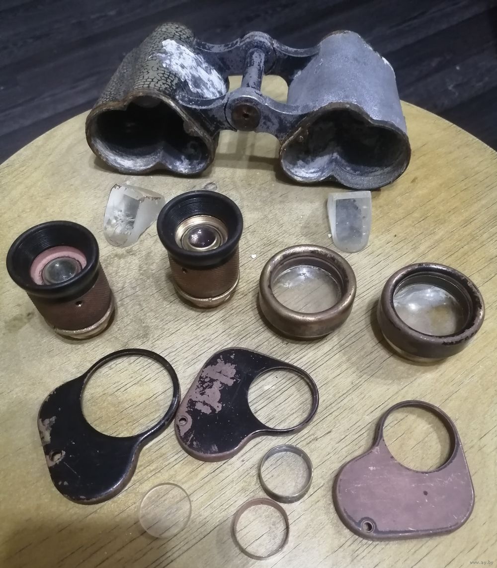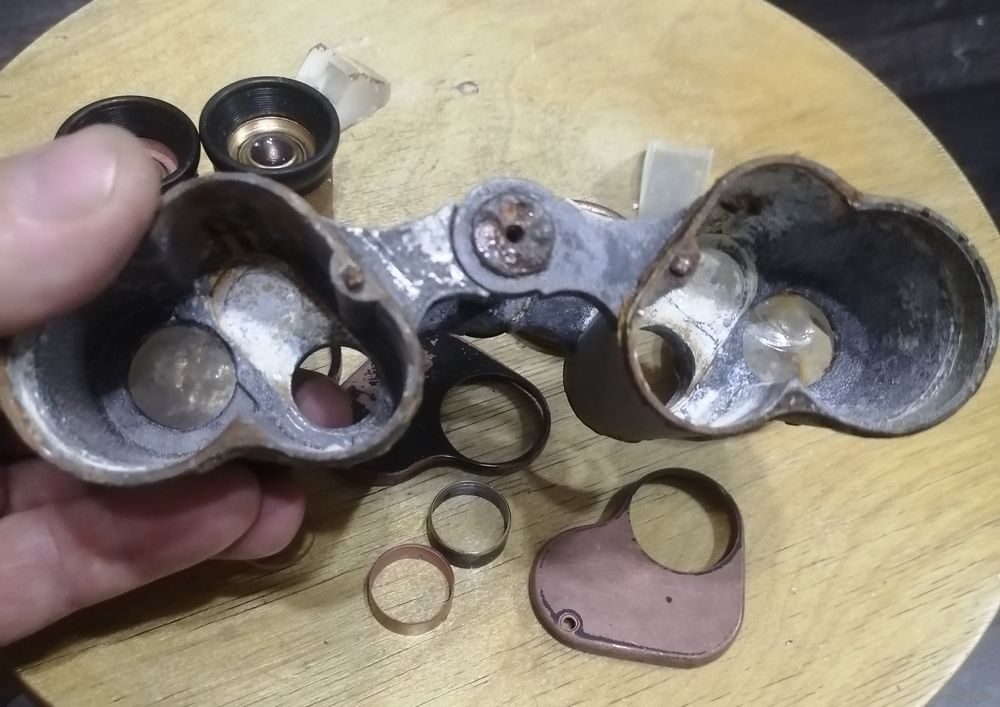На крышке клеймо 1940г. Наглазники оригинал . Стекла с сеткой новые.Окуляры и обьективы разбираются.Корпус крепкий только надо разработать. |