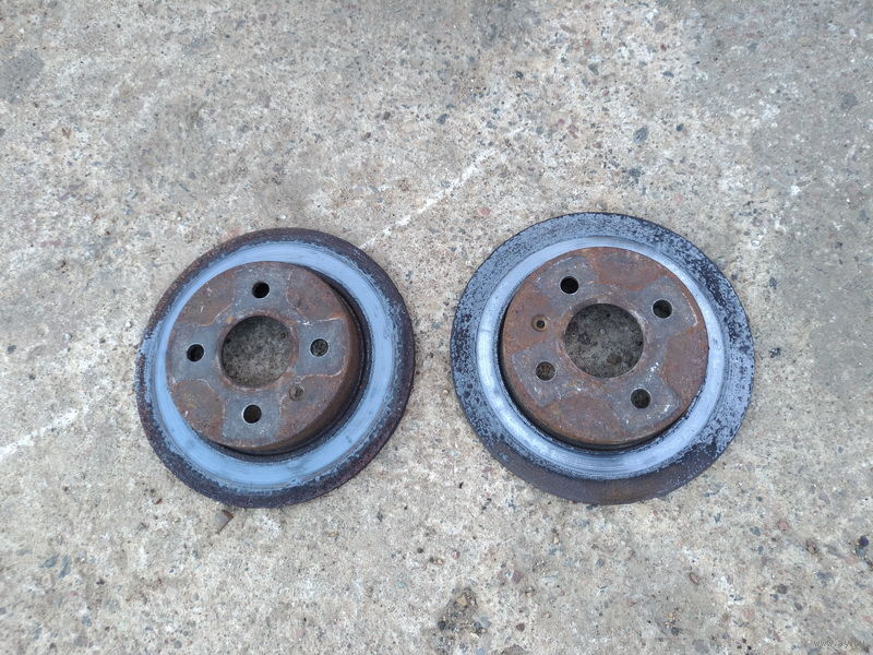 2) Диск тормозной задний GM Opel Astra H (2шт) - диски на 4 болта, дефект - сильная ржавчина, остаток толщины дисков 8мм (фото 2) = 5р (*2 = 10р) (б/у).