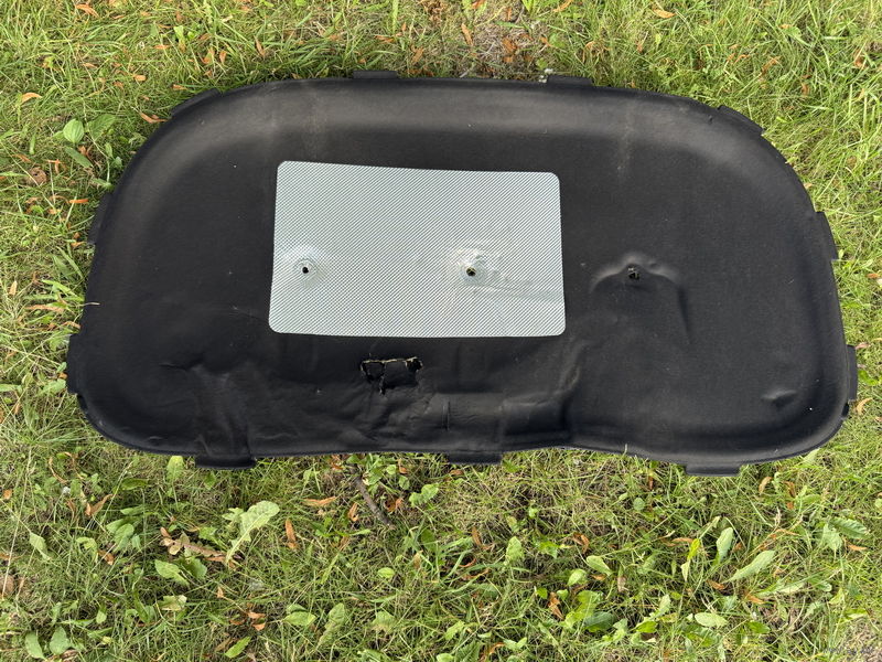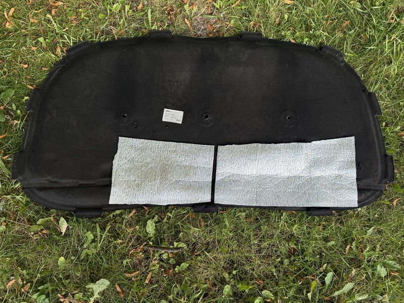 1) Шумоизоляция капота GM 39128909 - шумка капота с экраном, дефект обвисла снизу и небольшая дырка по центру верхнего слоя (фото 1 и 2 и 3) = 100р (б/у).