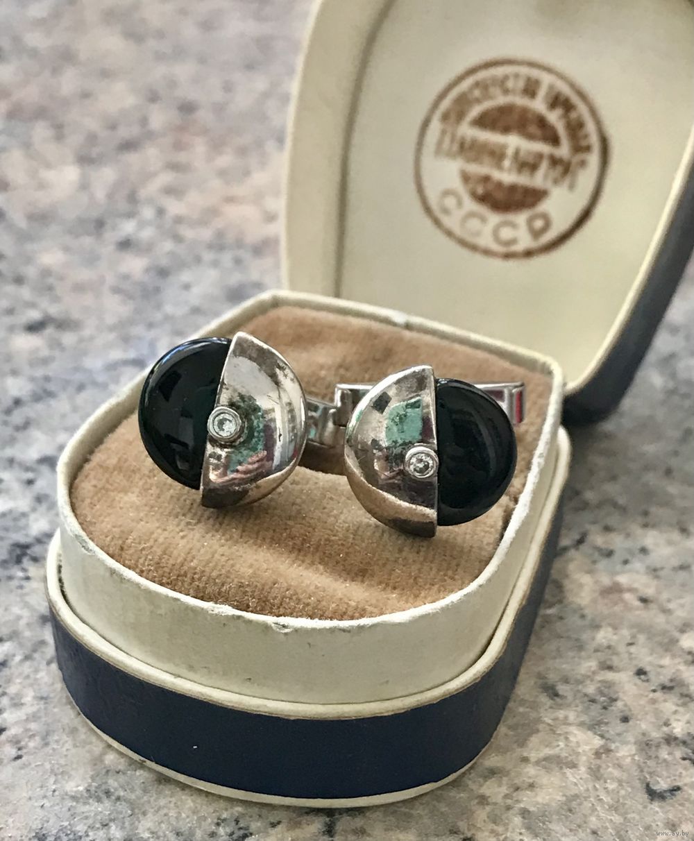 Запонки из серебра 925пр.(на каждой стоят отметки 925 и российское пробирное клеймо). Вставки стекло и кристаллы. Диаметр шляпки 1,5см., вес пары 5,95гр. Состояние хорошее.