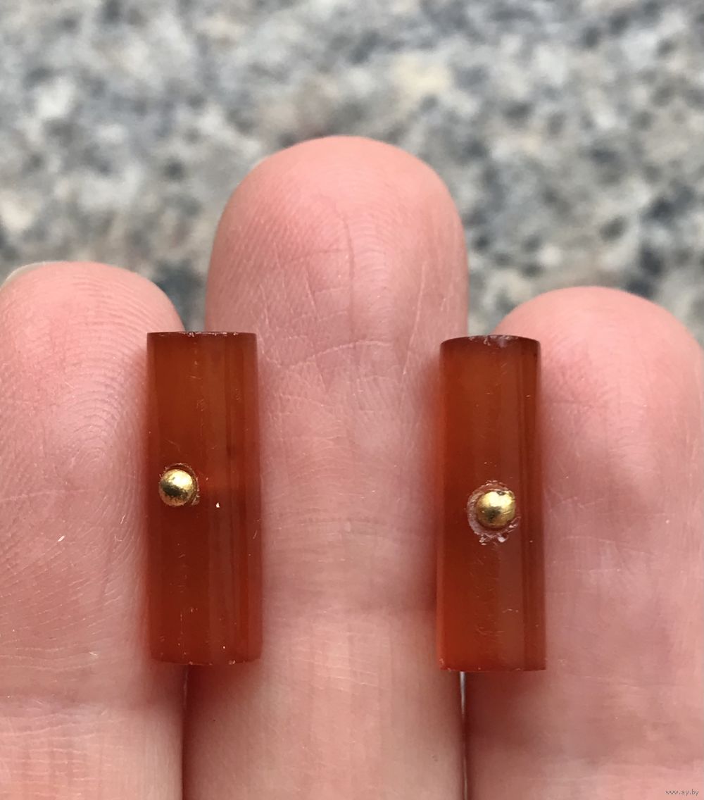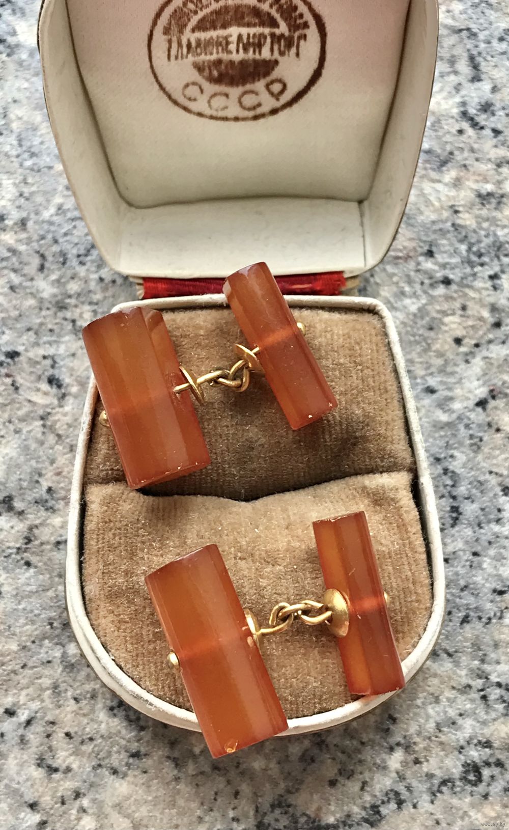 Небольшие винтажные запонки из янтаря (пресс) и латуни с позолотой. Калининград. На янтаре имеются незначительные скольчики. Общее состояние хорошее.
