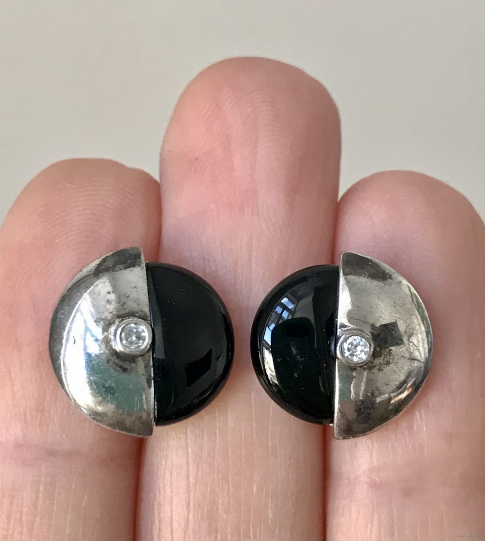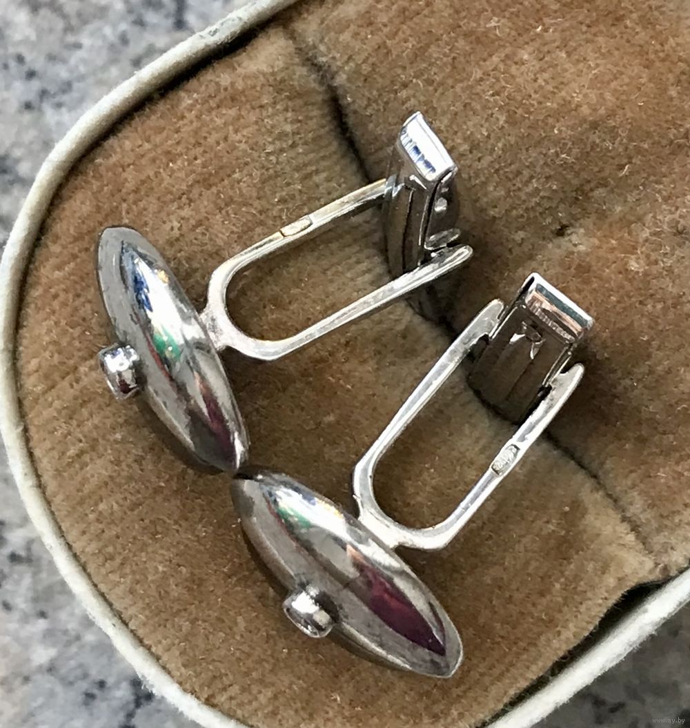 Запонки из серебра 925пр.(на каждой стоят отметки 925 и российское пробирное клеймо). Вставки стекло и кристаллы. Диаметр шляпки 1,5см., вес пары 5,95гр. Состояние хорошее.