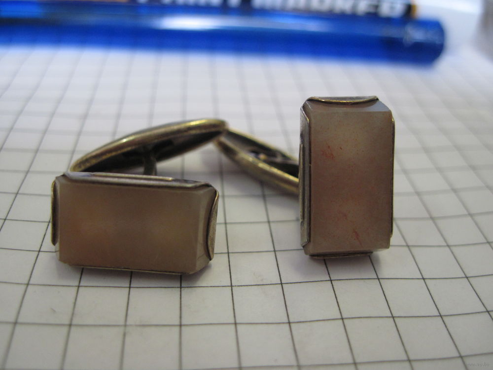 Запонки 875 пробы в позолоте с натуральным камнем с рубля!