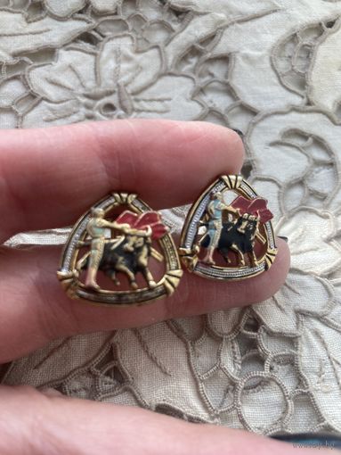 Запонки редкие Тореодор и Бык, латунь, эмаль