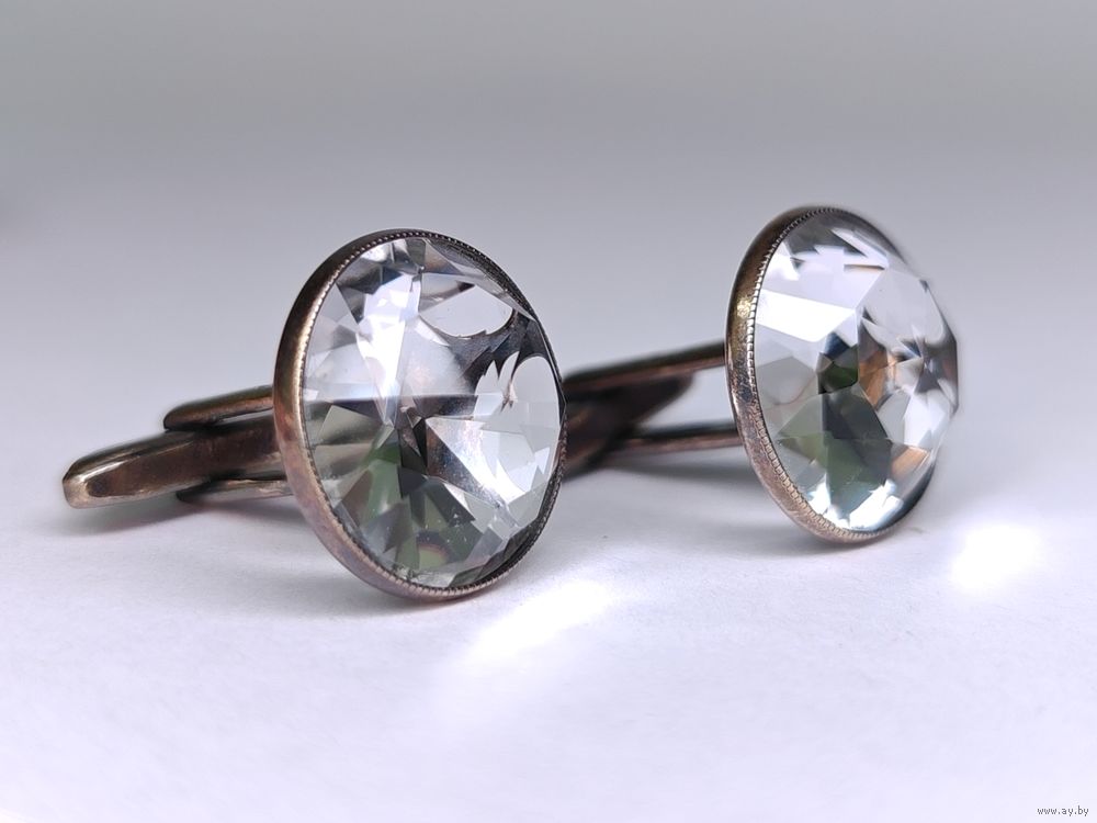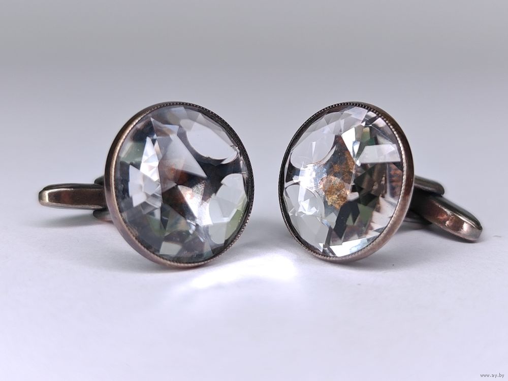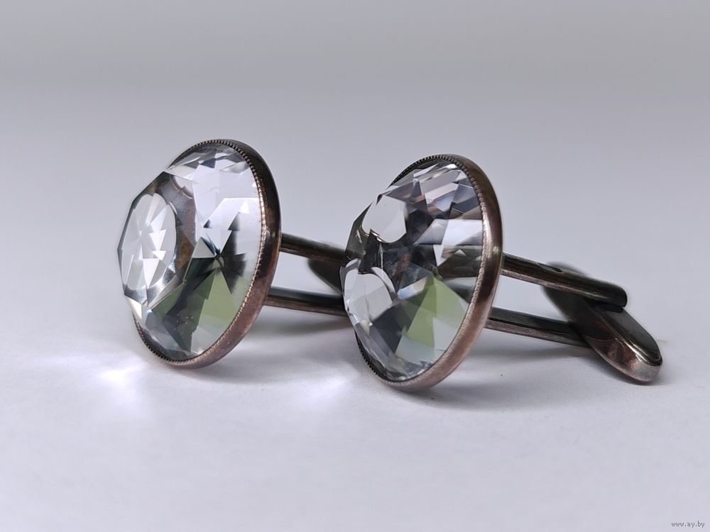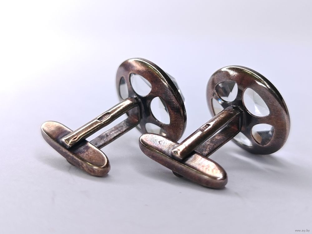 Запонки горный хрусталь серебро 875 клеймо звезда СССР Русские самоцветы