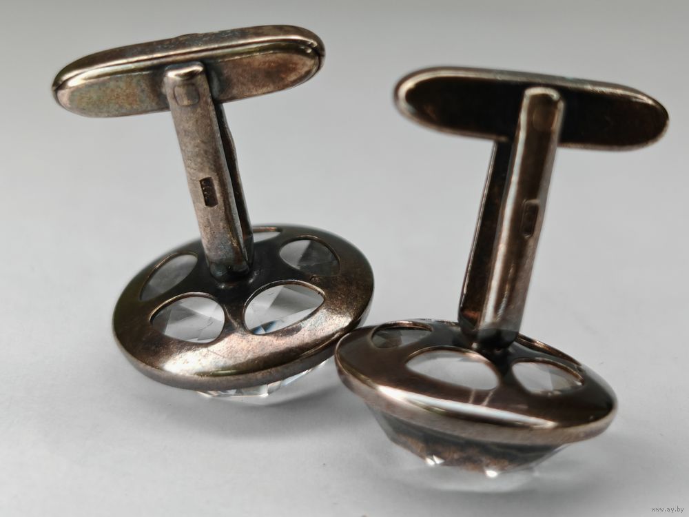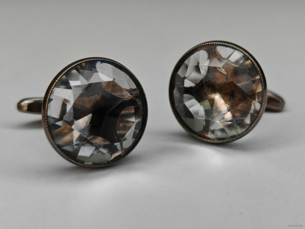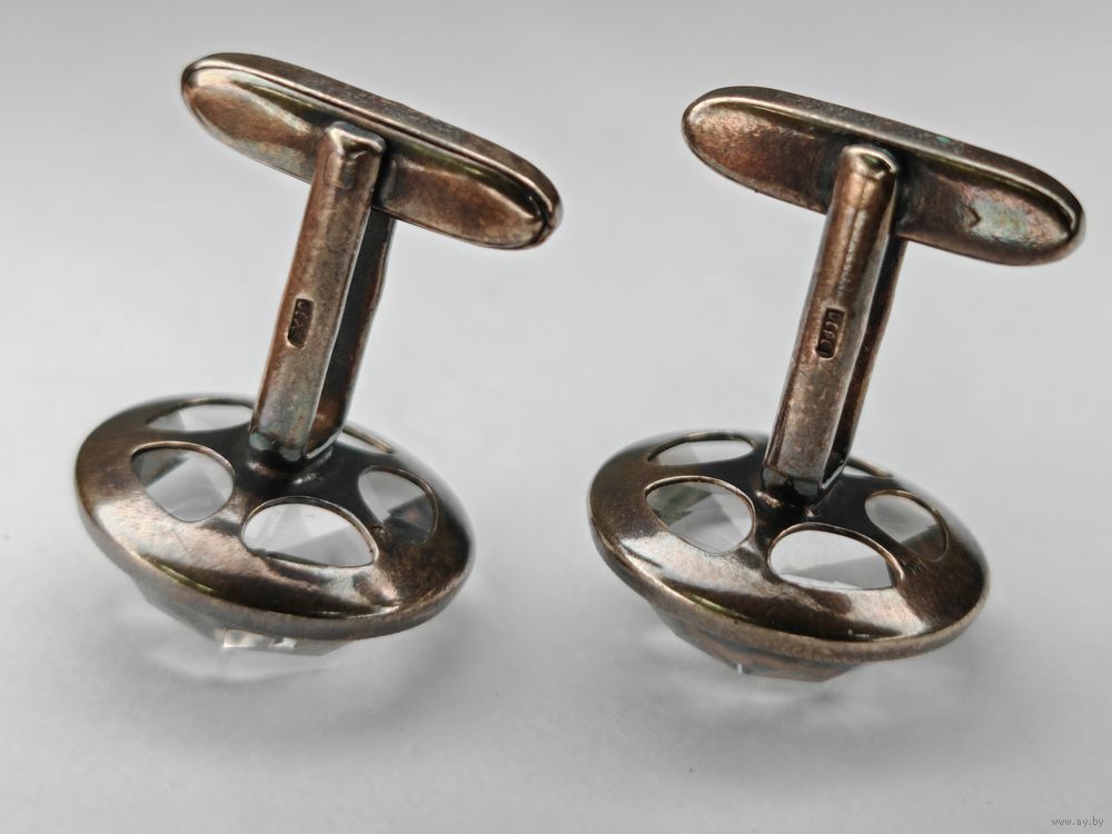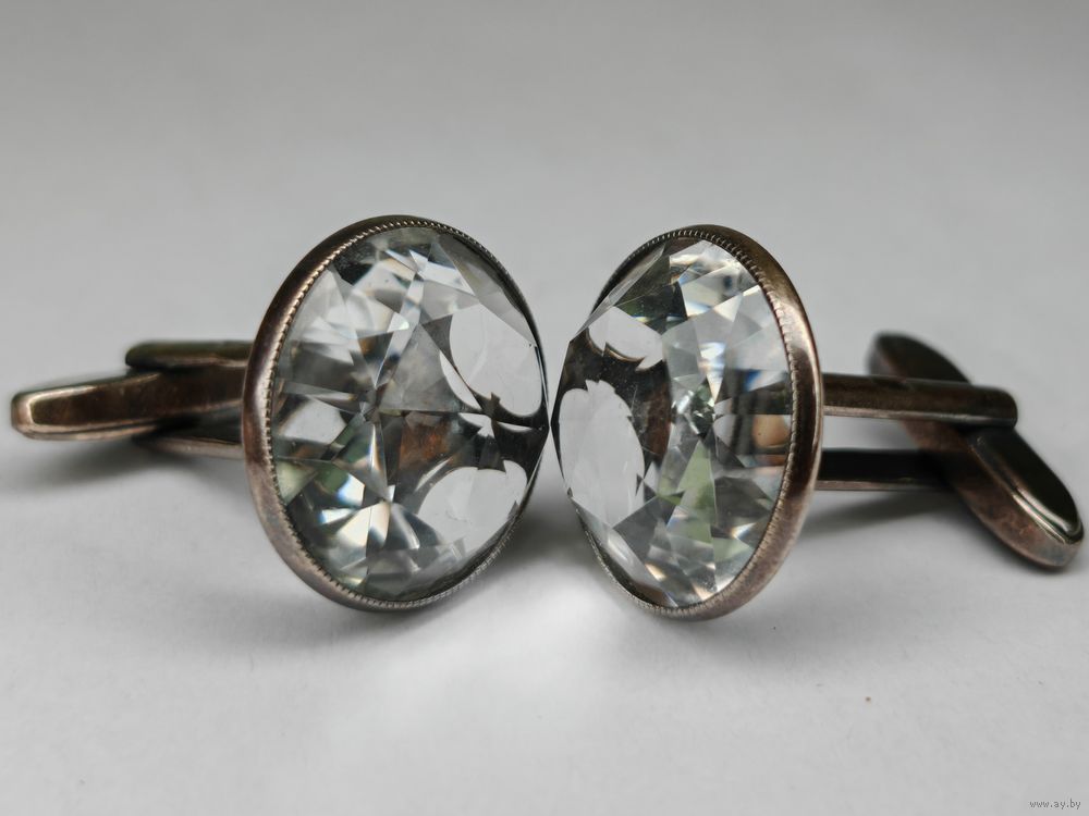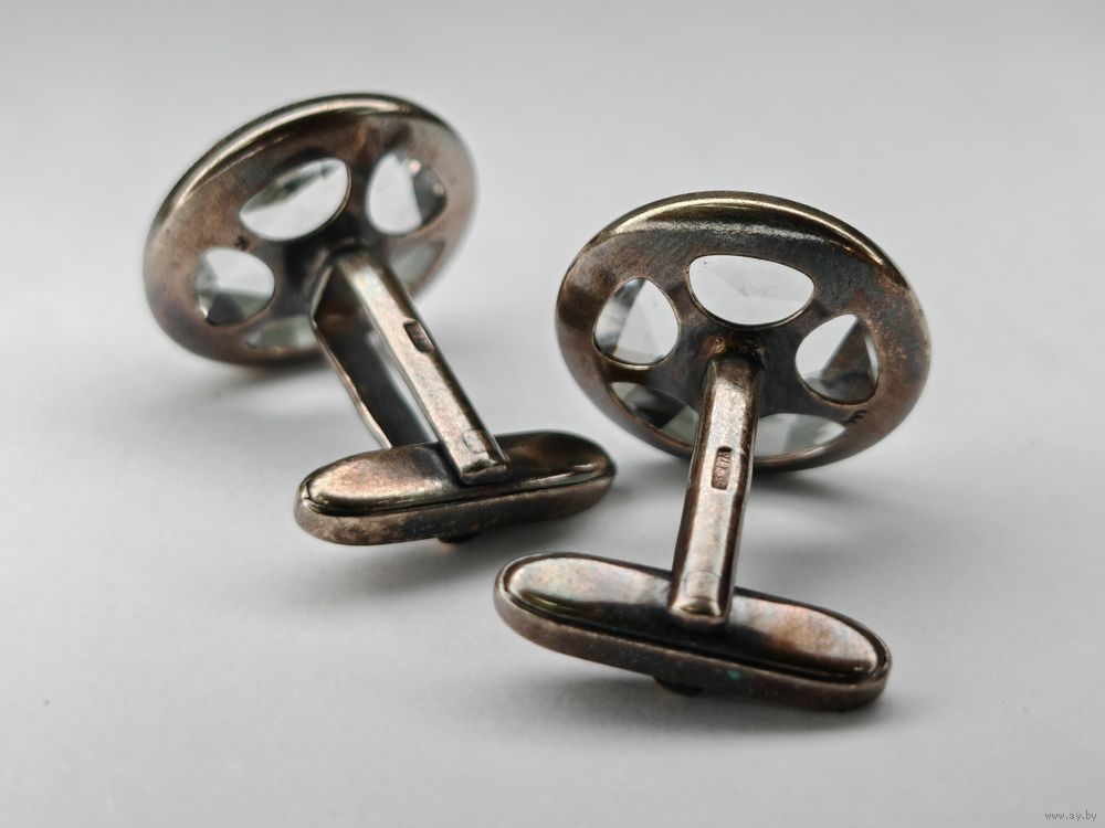 Запонки горный хрусталь серебро 875 клеймо звезда СССР Русские самоцветы