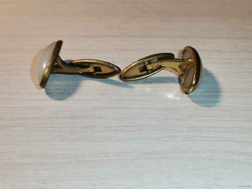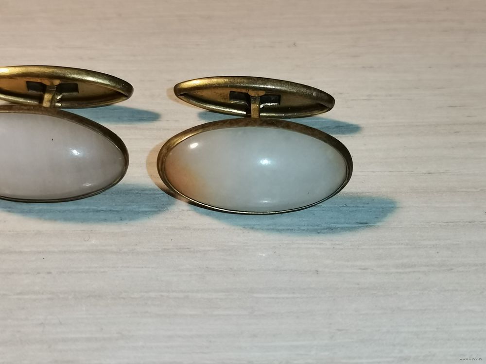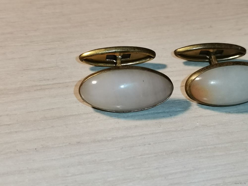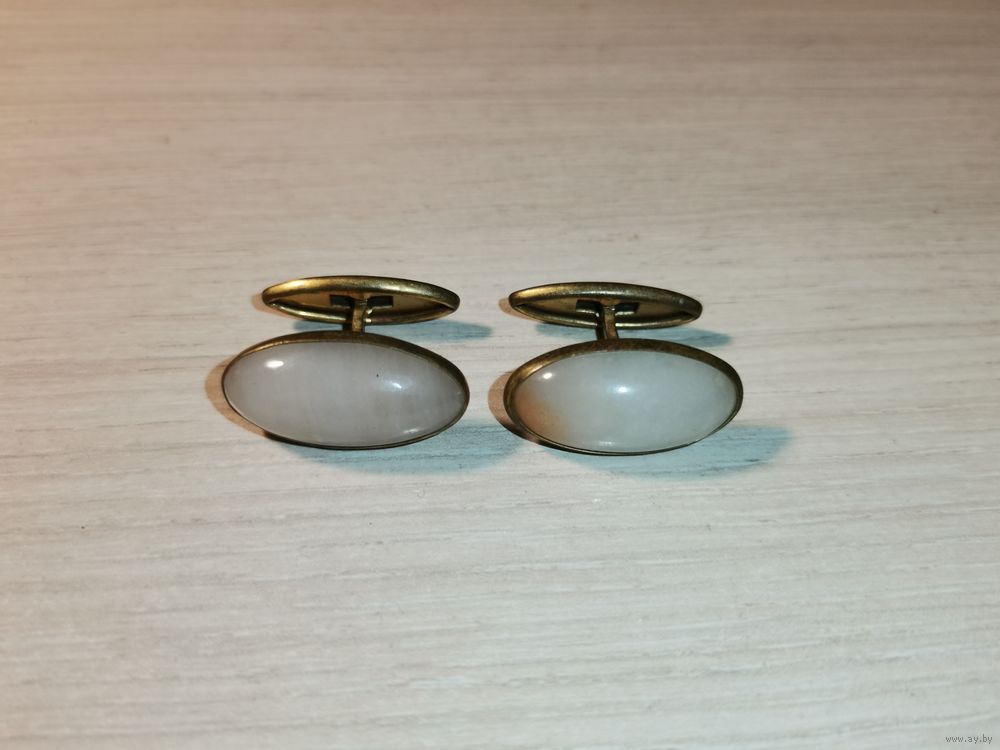 Запонки с вставками из натурального камня, клеймо РС 5 М.