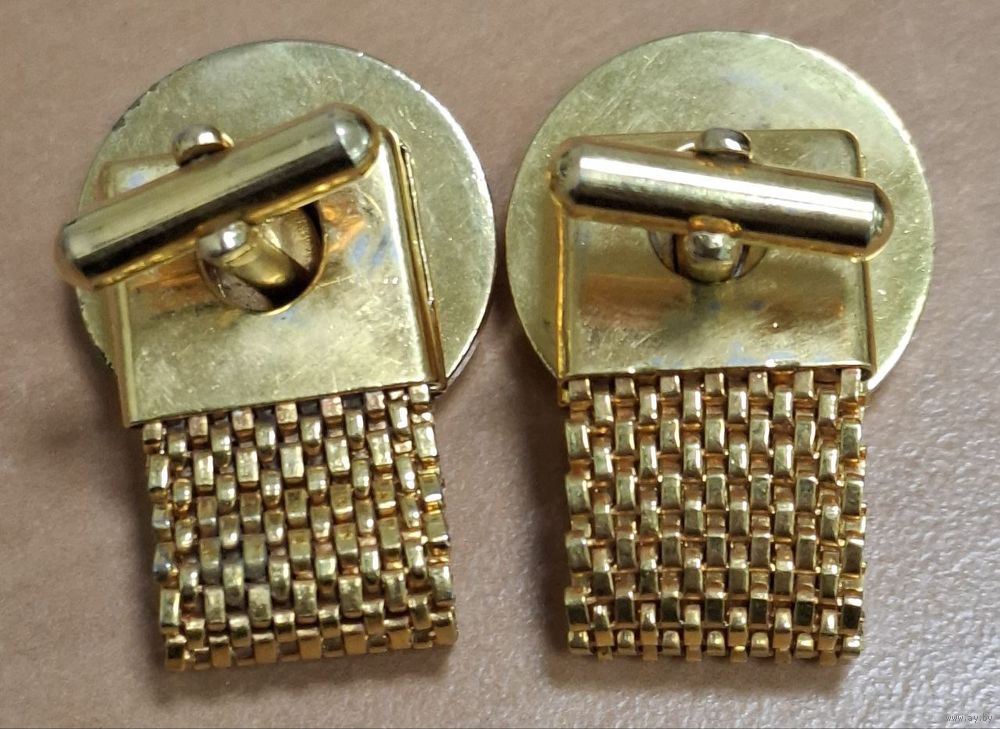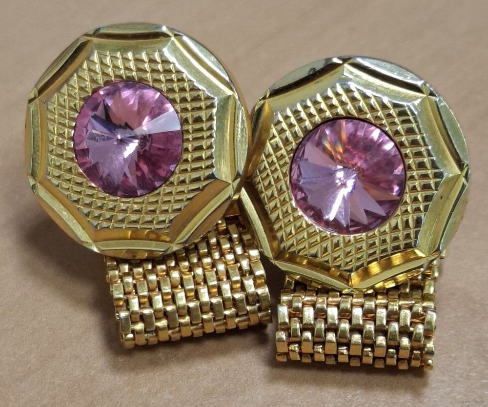 Запонки СССР. С камнями, позолоченные. Эфектные