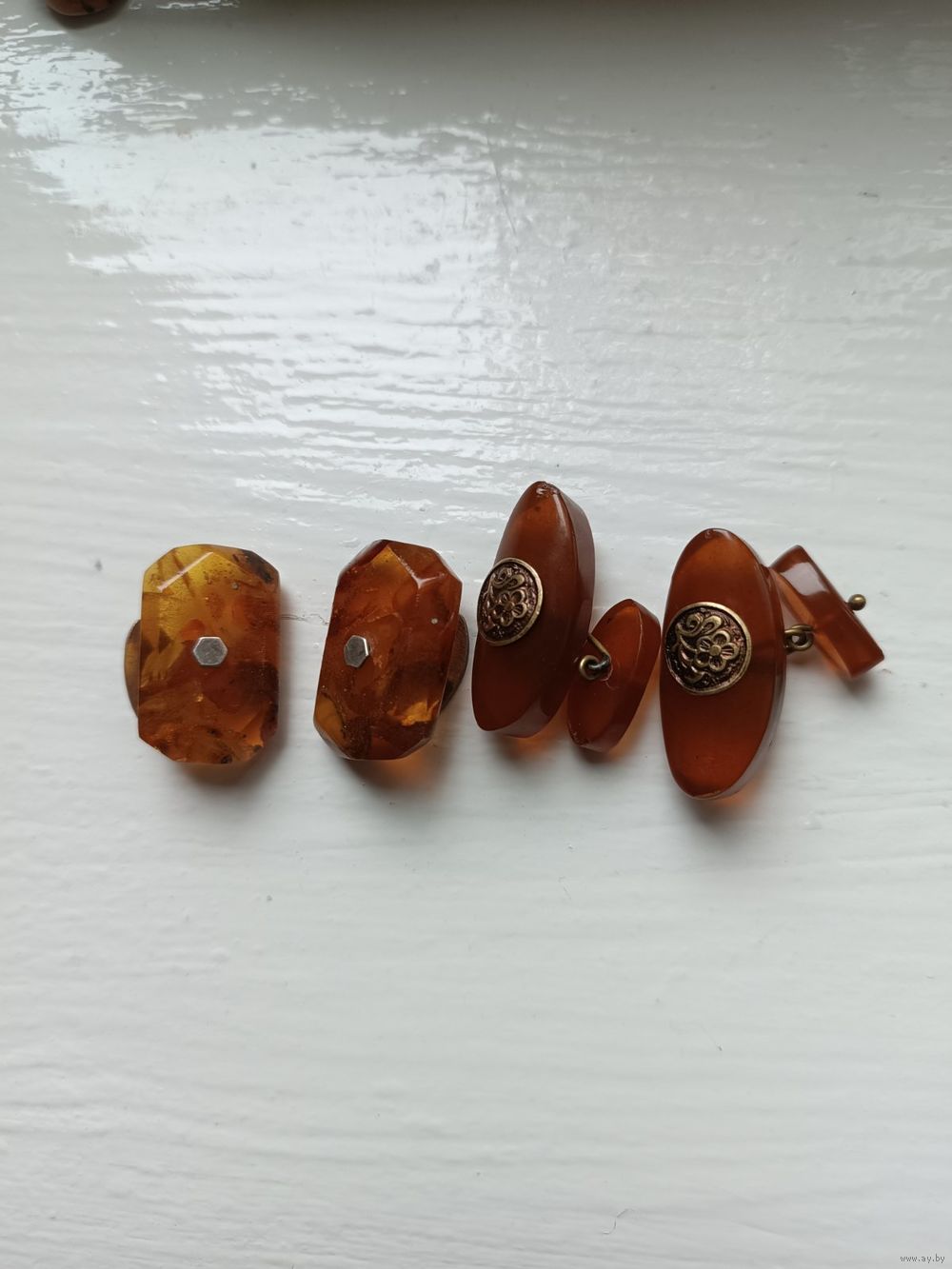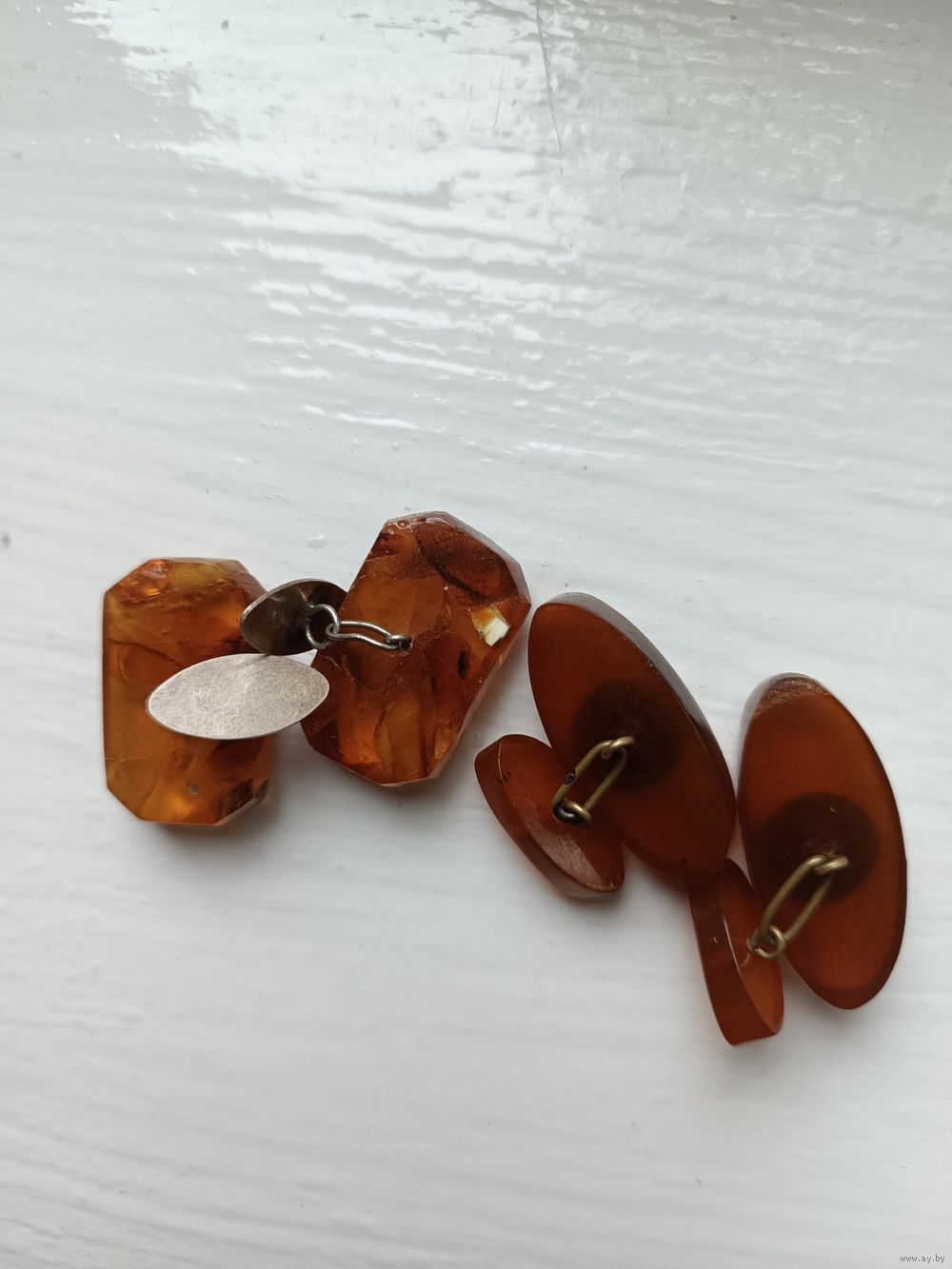 Запонки СССР, янтарь.