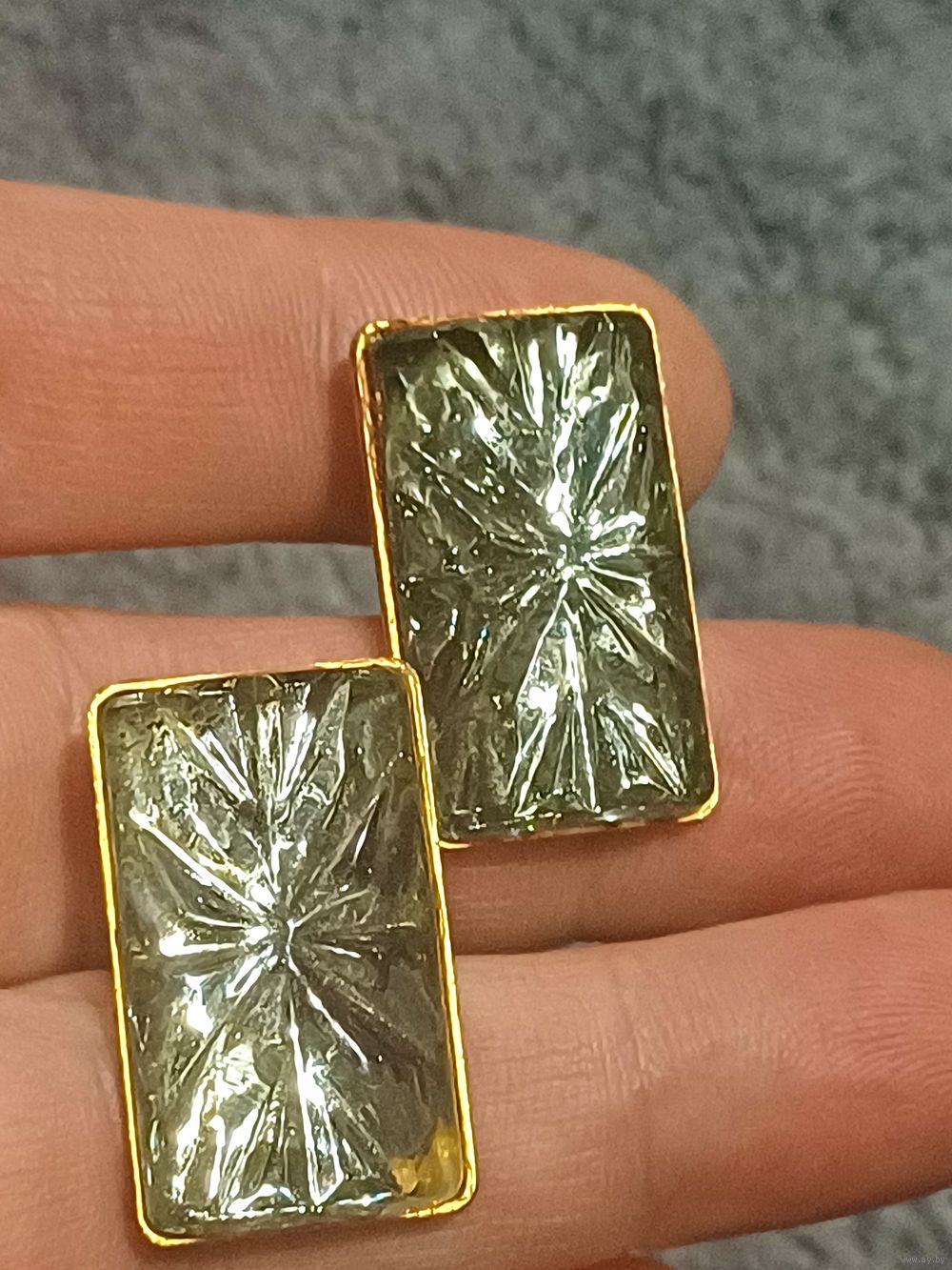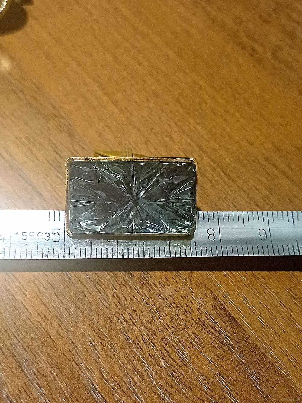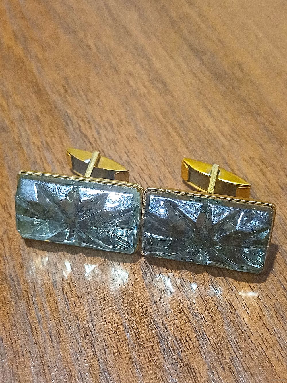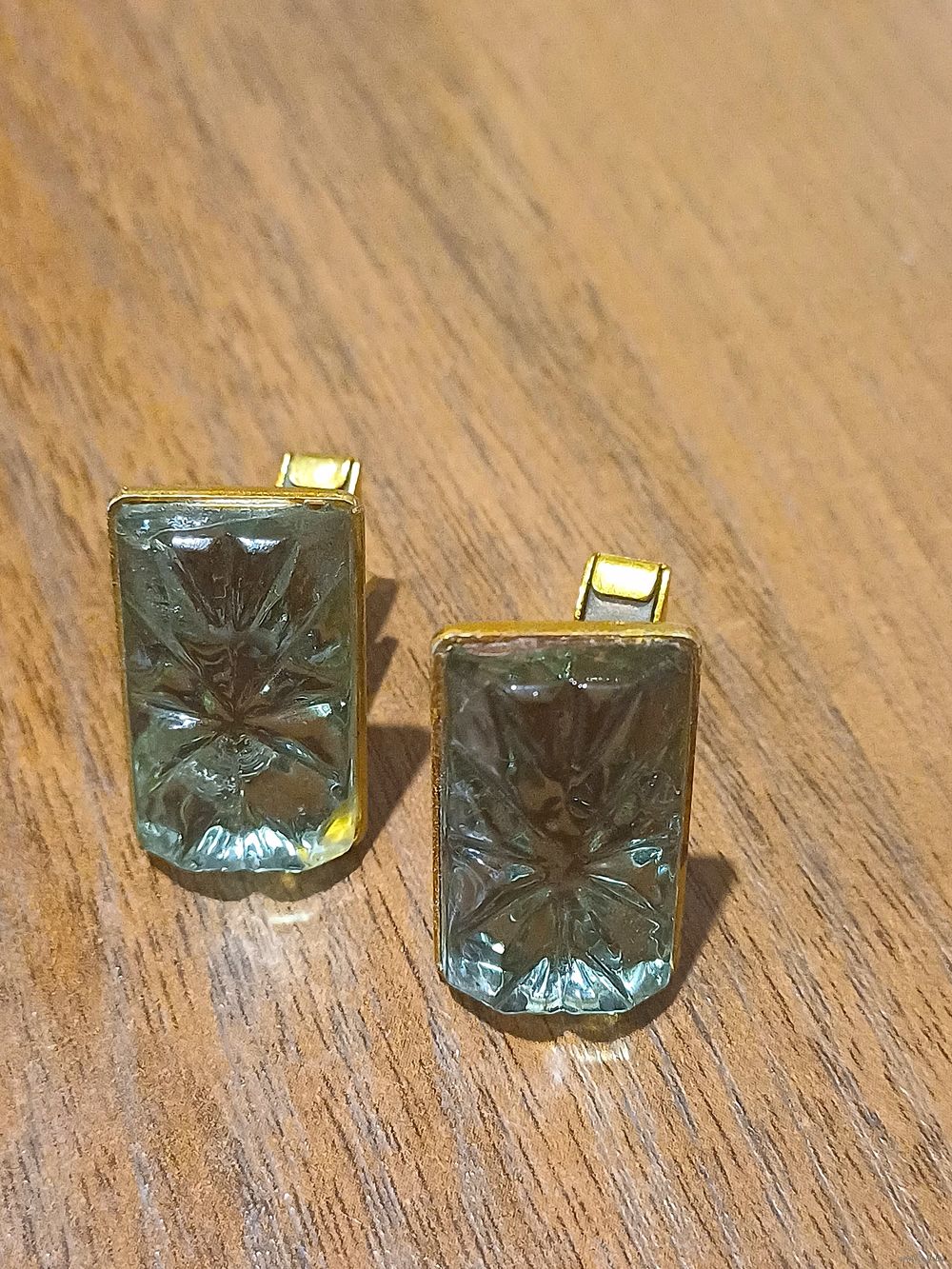 Запонки из металла с резным стеклом, нежно-голубого цвета из СССР, красивые. Клейма не нашла, но видно, что благородные.