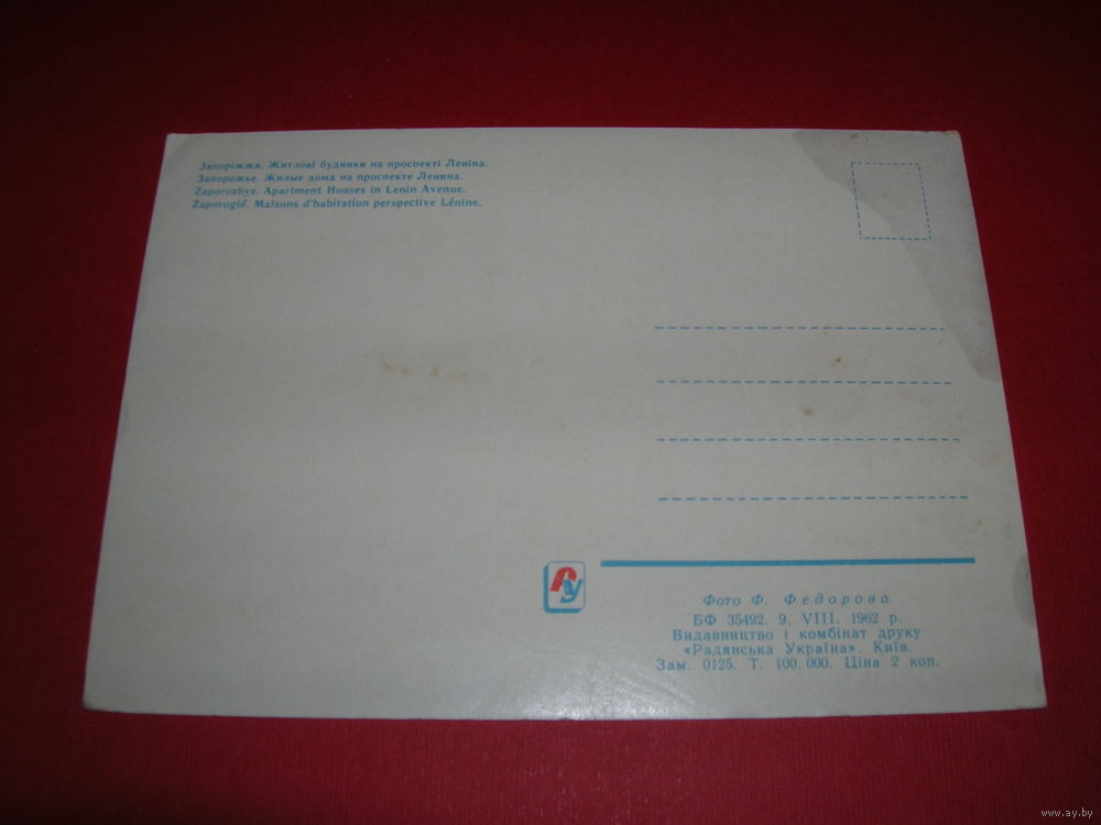 Запорожье Проспект Ленина 1962 год Издание УССР Киев чистая
