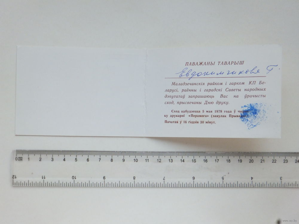 Запрашальны бiлет дзень друку 1978 г