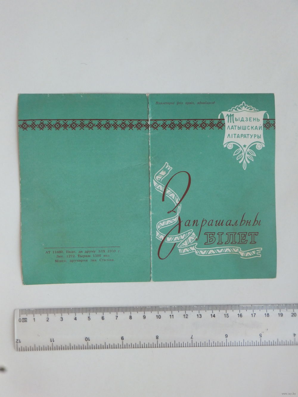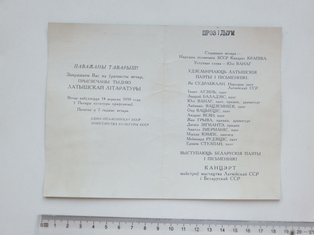 Запрашальны бiлет Тыдзень Латышскай лiтаратуры Мiнск 1959