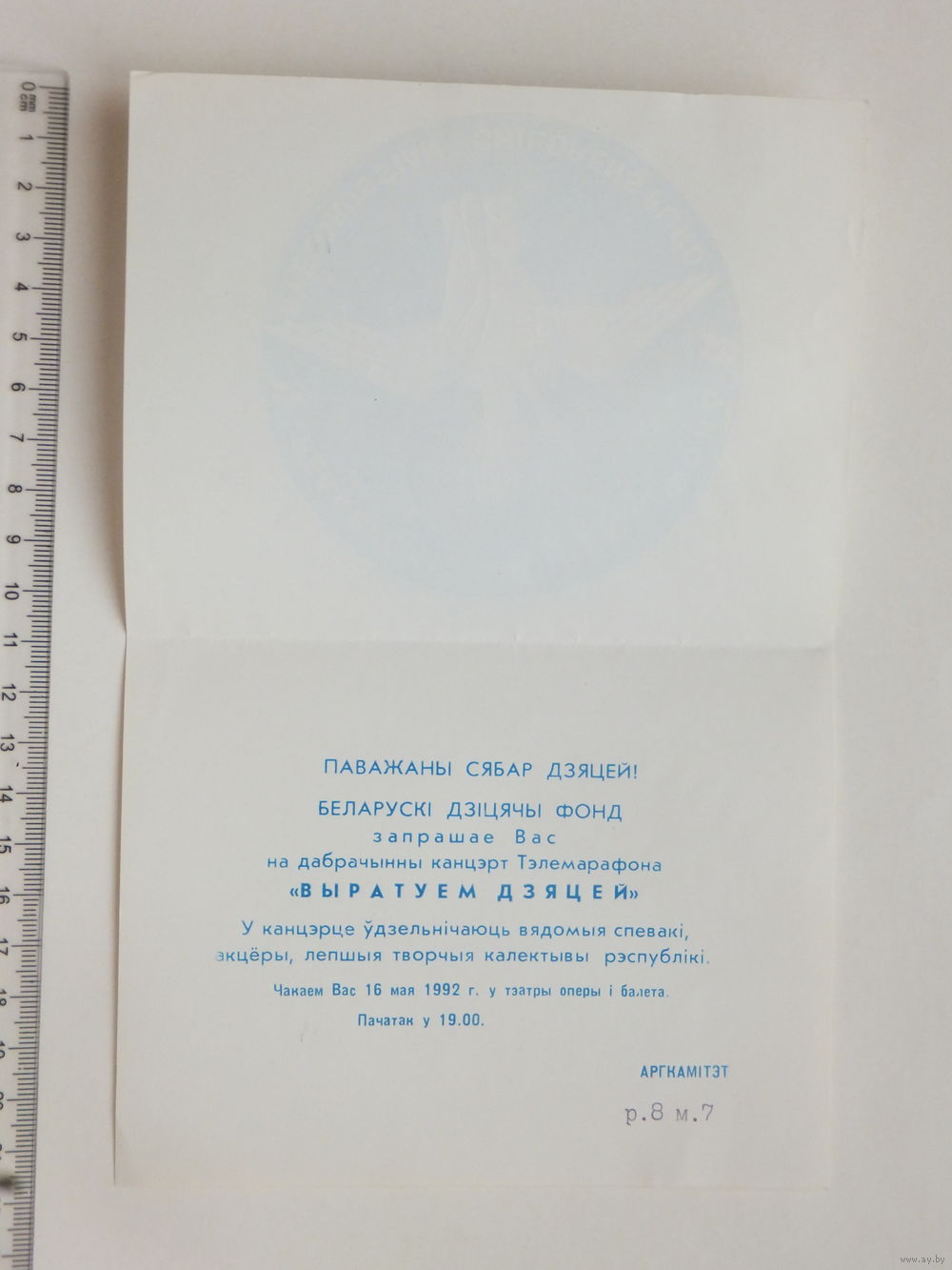 Запрашэнне Беларускi дзiцячы фонд Мiнск 1992
