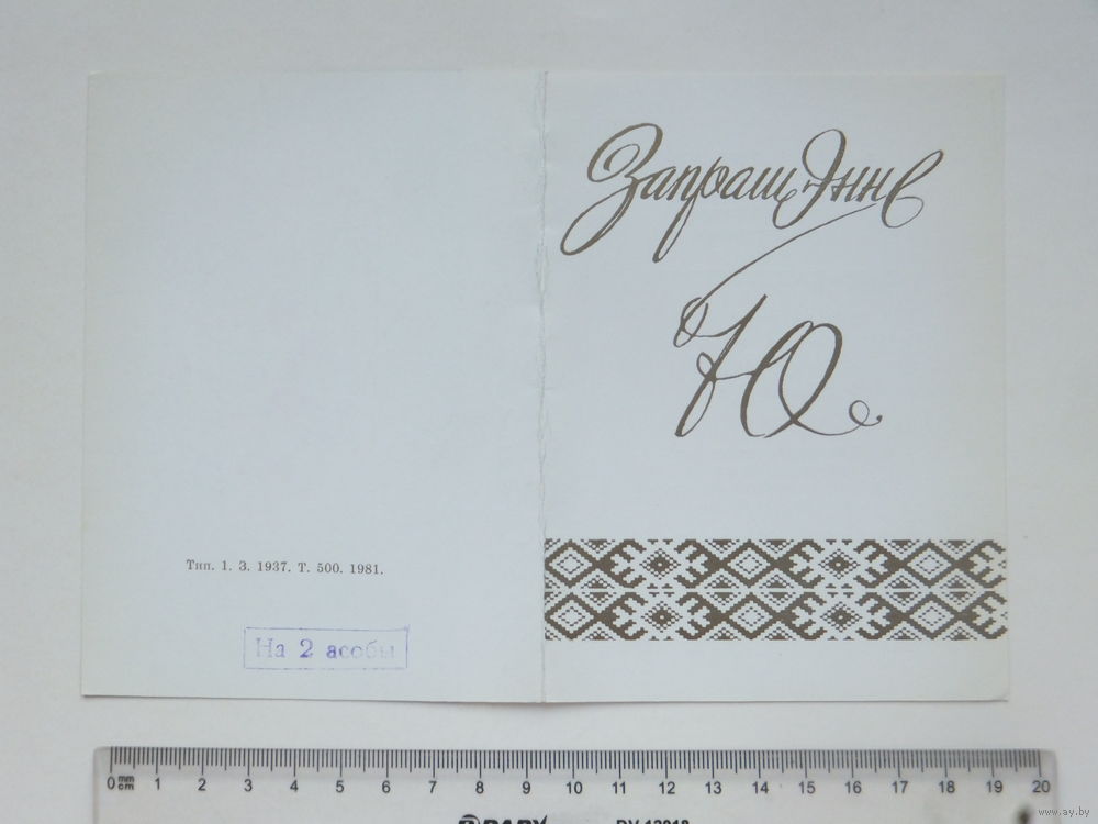 Запрашэнне на вечар Iосiфа Васiлеўскага Мiнск 1981