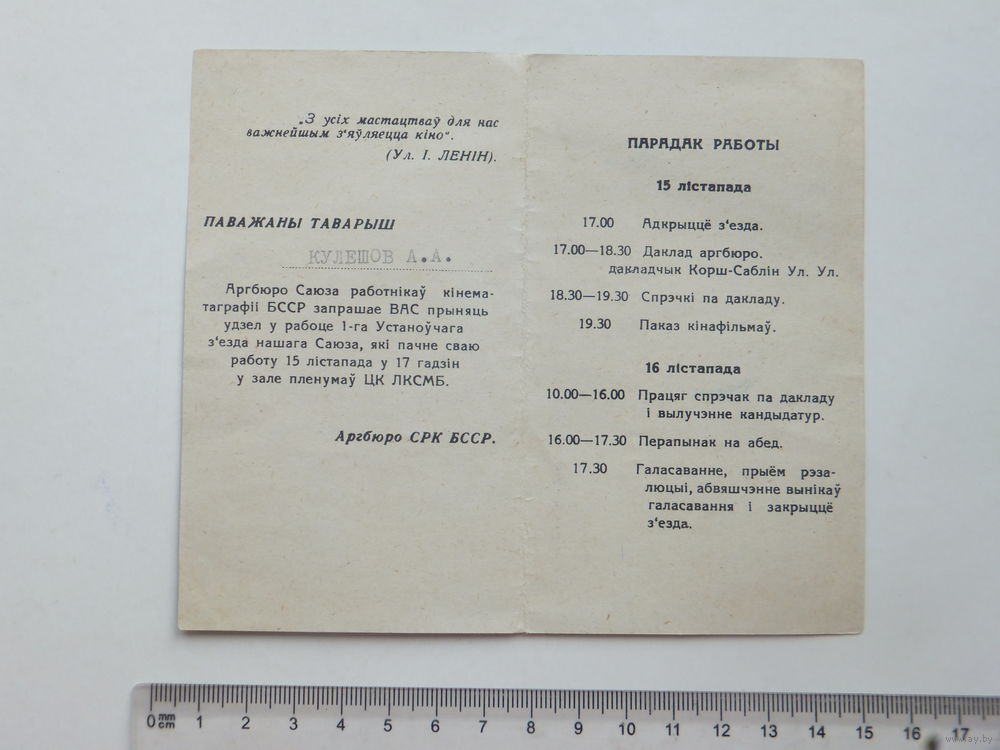 Запрашэнне першы ўстаноўчы з"езд кiнематаграфii БССР Мiнск 1962