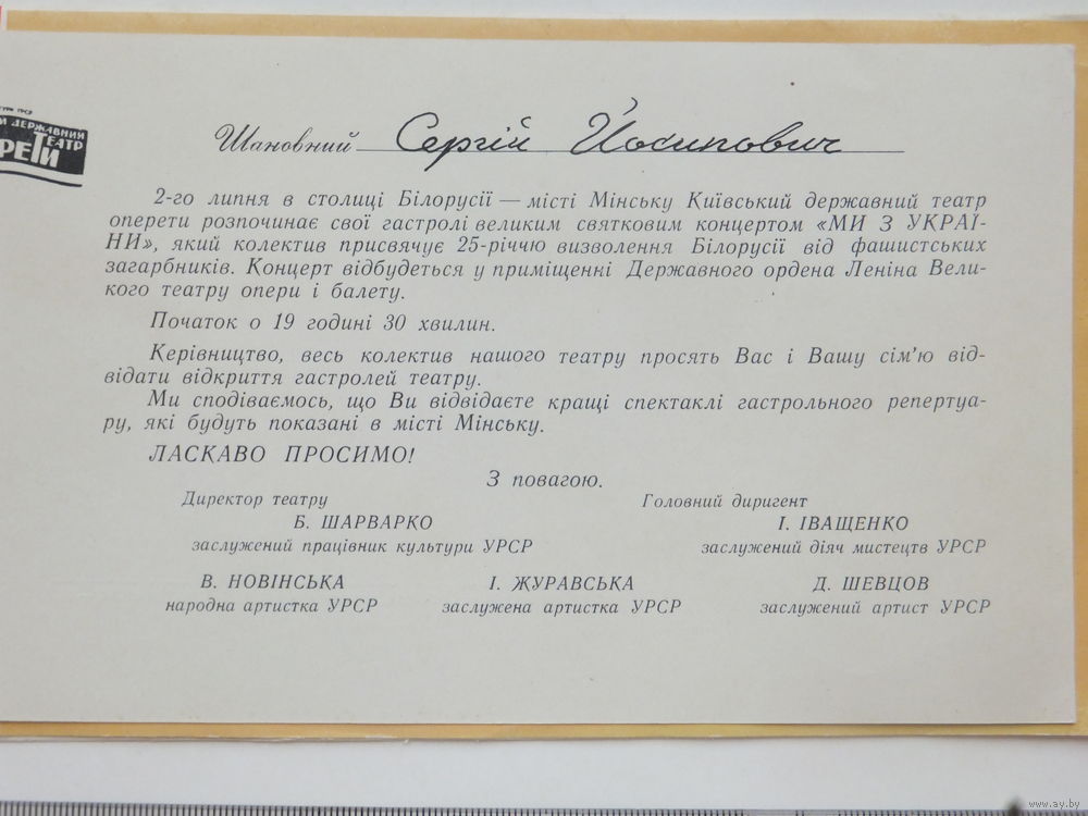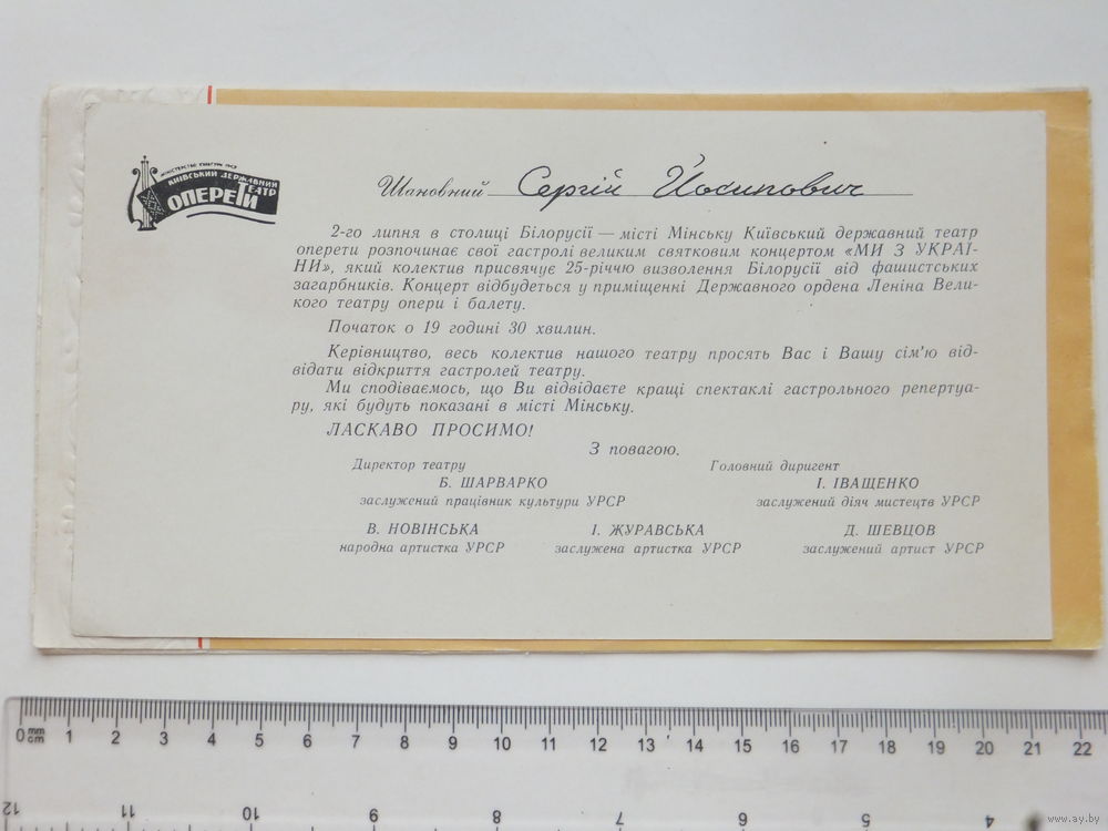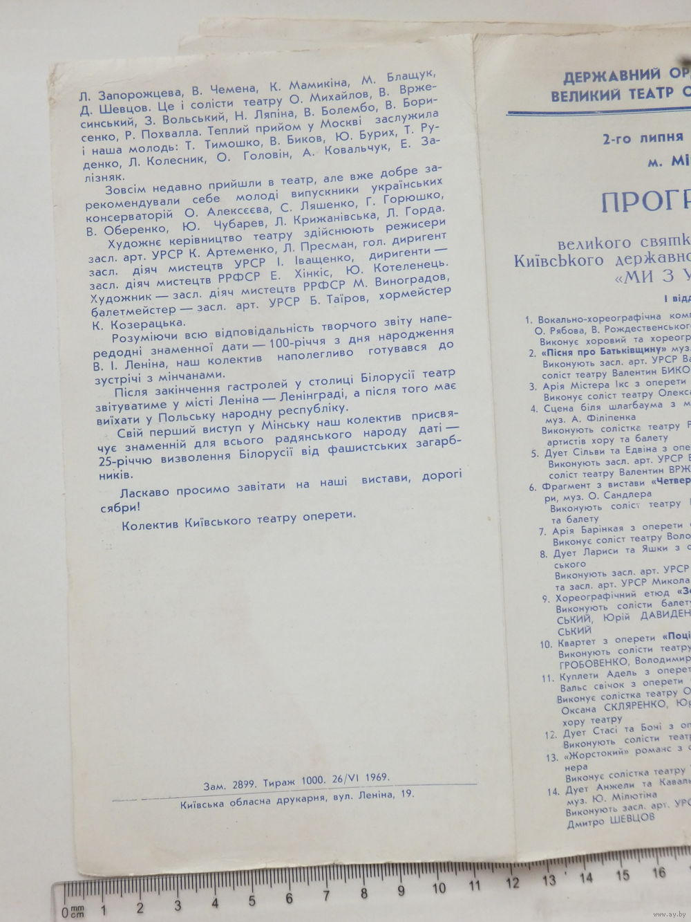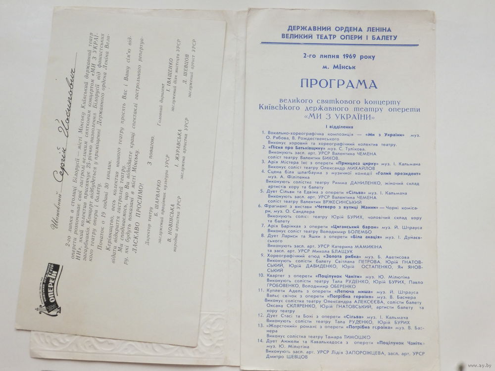 Запрашэнне + програма на концерт МИ З УКРАIНИ Мiнськ 1969