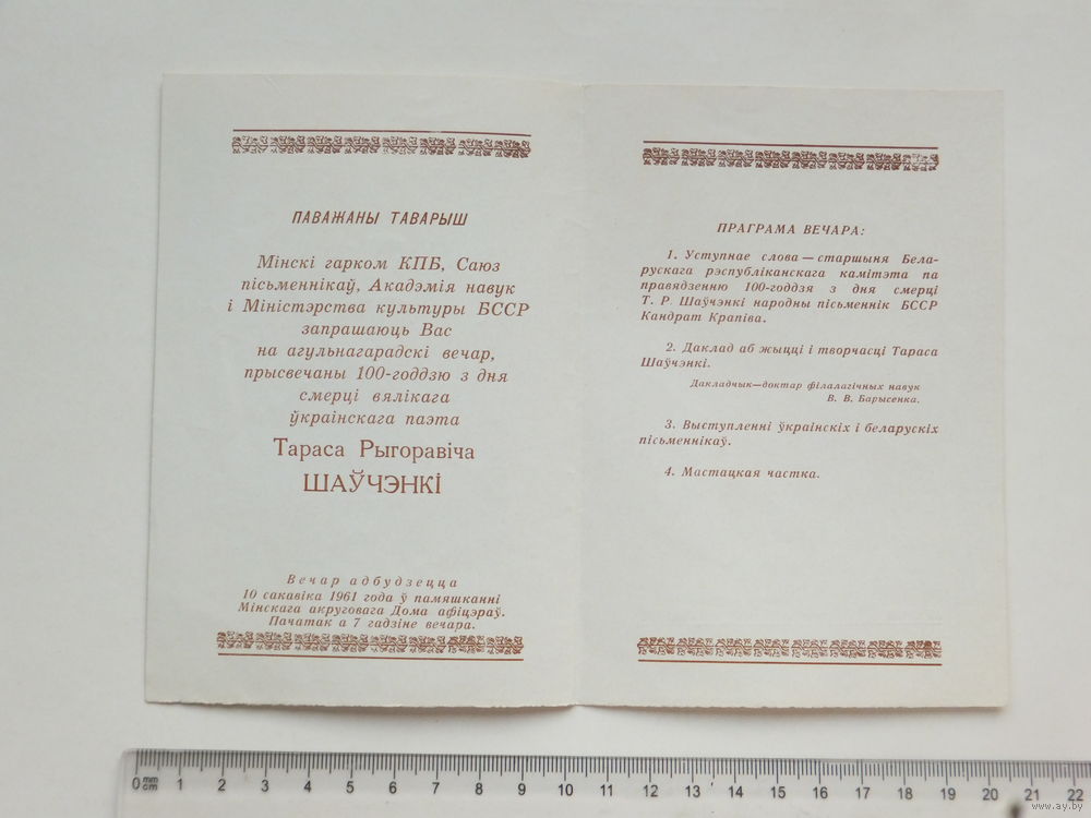 Запрашэнне Тарас Шаўчэнка Мiнск 1961
