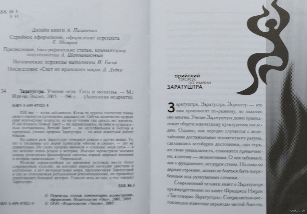 Тираж 3000 экз. 498 стр. Мы познаем Новый Завет - по экранизациям, песням и музыкальным постановкам, Ветхий Завет - по мультфильмам и Библии в картинках, учение пророка Заратустры - по всем известной работе Ницше. На самом деле Заратустра `говорил` совсем о других вещах. То, что к утешению его верой прибегали `убогие и сирые` - это не удивительно. Но слову пророка внимали и `сильные мира сего` - а это явление очень редкое в истории. Именно зороастризм заложил основу религиозно-философской системы первой мировой империи в истории цивилизации - Персидской.