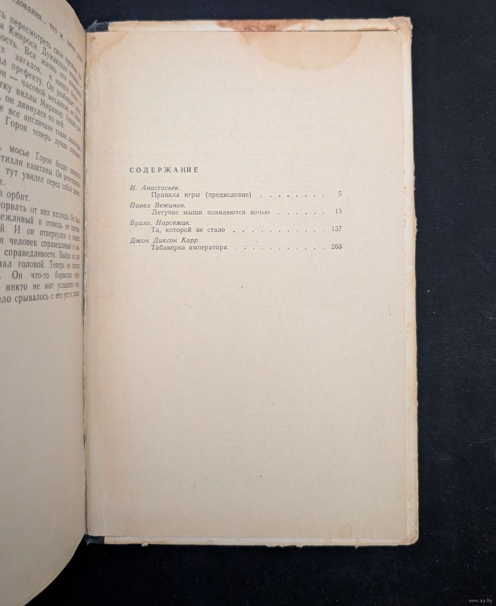 В сборник включены три детектива. Болгарский писатель П.Вежинов рассказывает о расследовании трех убийств в маленькой болгарской деревне, ставшей ареной политической борьбы ("Летучие мыши появляются ночью"); французские писатели Буало и Нарсежак раскрывают ограниченный мир буржуазного обывателя ("Та, которой не стало"); в романе английского писателя Джона Диксона Карра "Табакерка императора" описываются атмосфера французского курорта и его обитатели — люди, материально благополучные, но растленные и опустошенные.